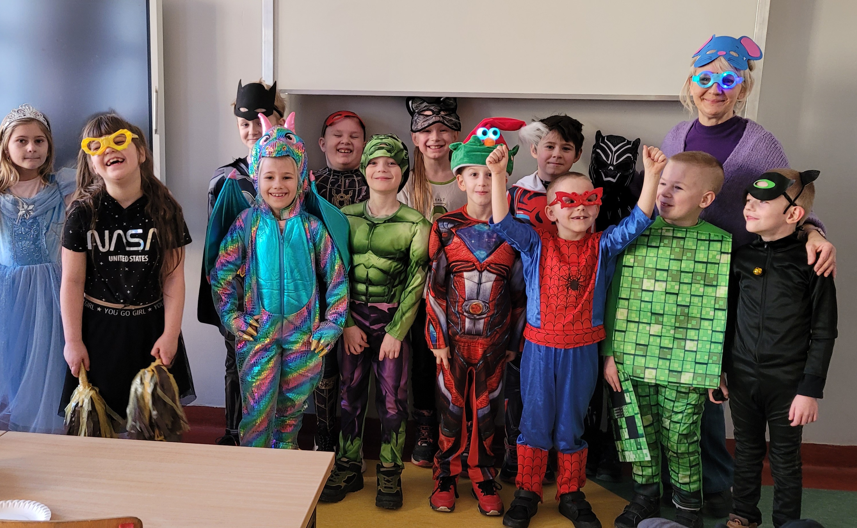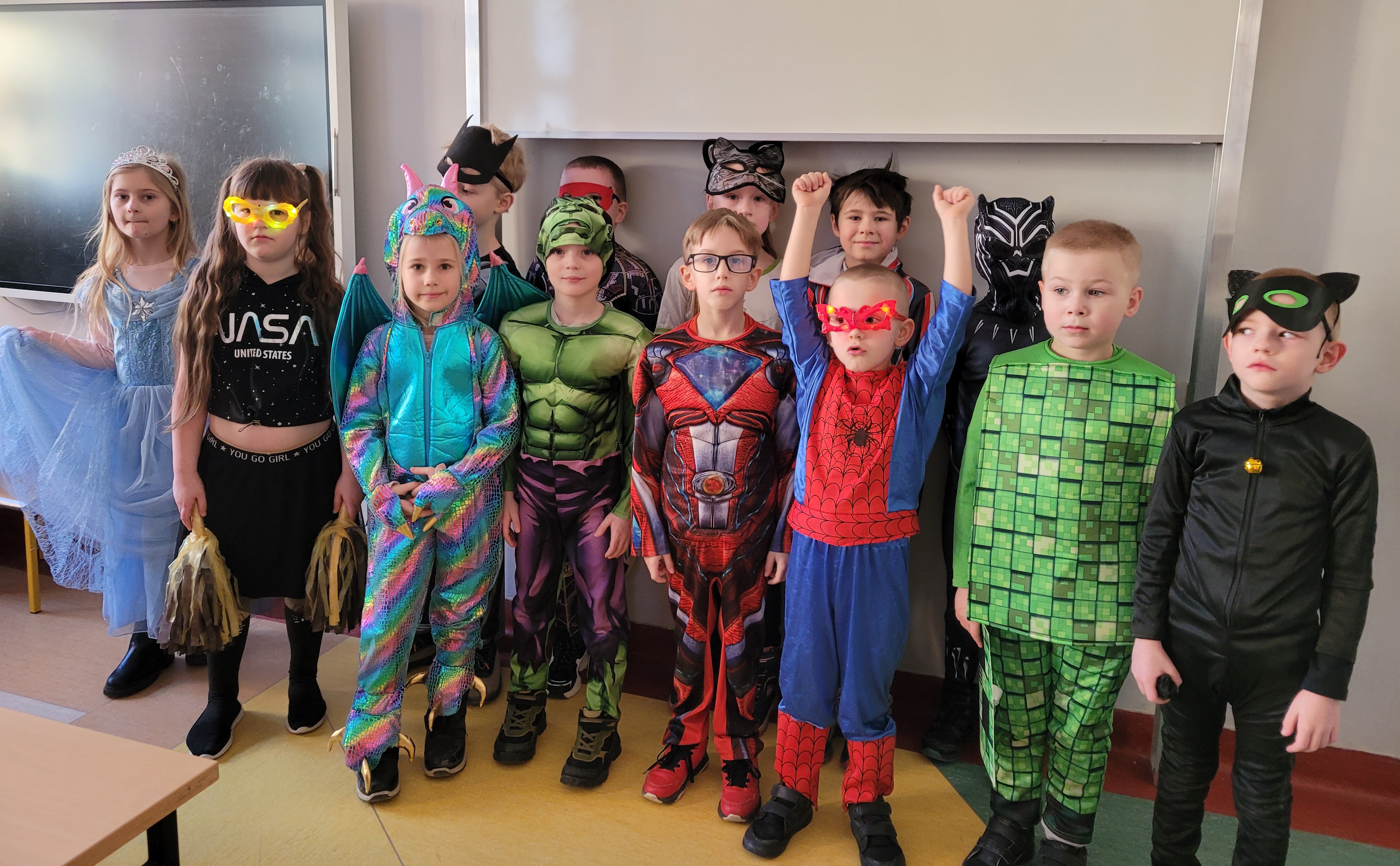Oto, w jakie stroje przebrali się uczniowie klasy 1b podczas balu karnawałowego, który odbył się w naszej szkole w miniony poniedziałek.