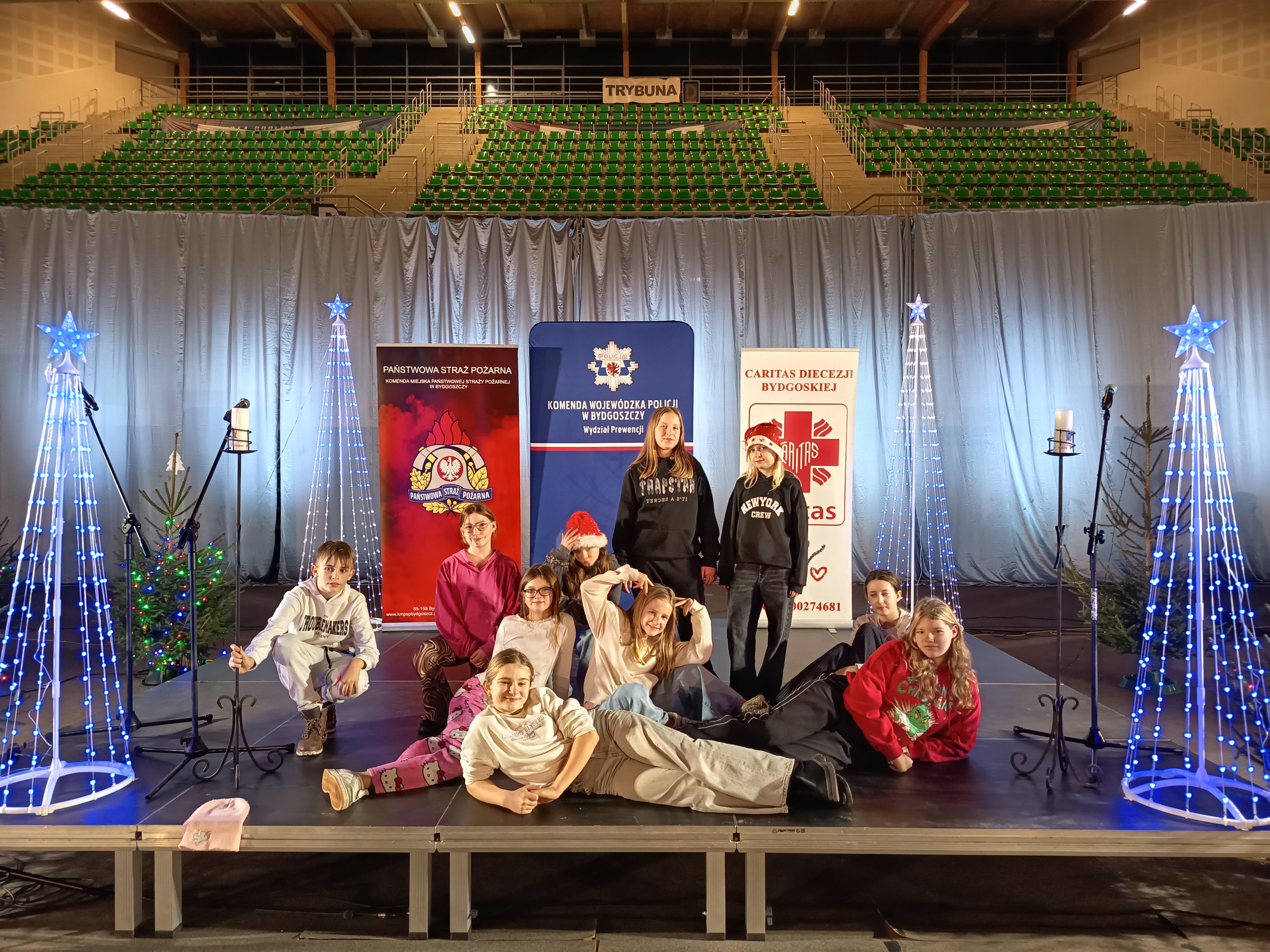 Nasi wolontariusze zostali zaproszeni na miłe spotkanie ze św. Mikołajem , które odbyło się w Hali Widowiskowo- Sportowej "Łuczniczka". Prawie 1,5 tysiąca dzieci z naszego województwa wzięło udział w świątecznej akcji profilaktycznej pt: "Bezpieczeństwo ze św. Mikołajem". To piękne wydarzenie zorganizowała Caritas Diecezji Bydgoskiej oraz Komenda Wojewódzka Policji w Bydgoszczy. Ks. Biskup Krzysztof Włodarczyk zapalił adwentową świecę i udzielił pasterskiego błogosławieństwa na czas przygotowania swoich serc na Święta Bożego Narodzenia. Policjanci natychmiast przygotowali przedstawienie profilaktyczne na temat bezpieczeństwa w ruchu drogowym oraz Internecie. Dla wolontariuszy była to nauka poprzez zabawę. Nie zabrakło też oczywiście wizyty św. Mikołaja,który obdarował wszystkie dzieci pięknymi prezentami i pysznym ciastem. Na koniec odbyła się wspólna, taneczna zabawa . Uśmiechnięci i zadowoleni wróciliśmy do swoich domów.