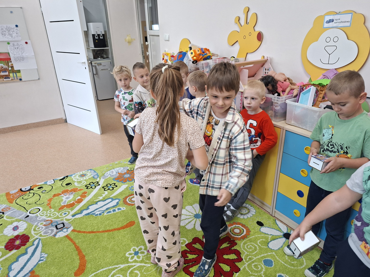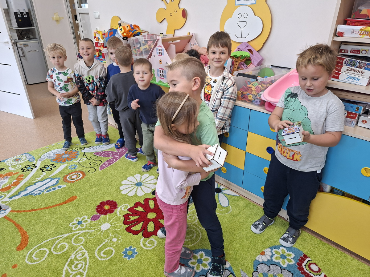 W tym dniu dziewczynki wręczyły chłopcom upominki, złożyły życzenia oraz mocno uściskały. Nie zabrakło słodkości dla wszystkich dzieci. Drodzy chłopcy życzymy Wam jeszcze raz dużo radości, wspaniałych przygód i spełnienia marzeń.