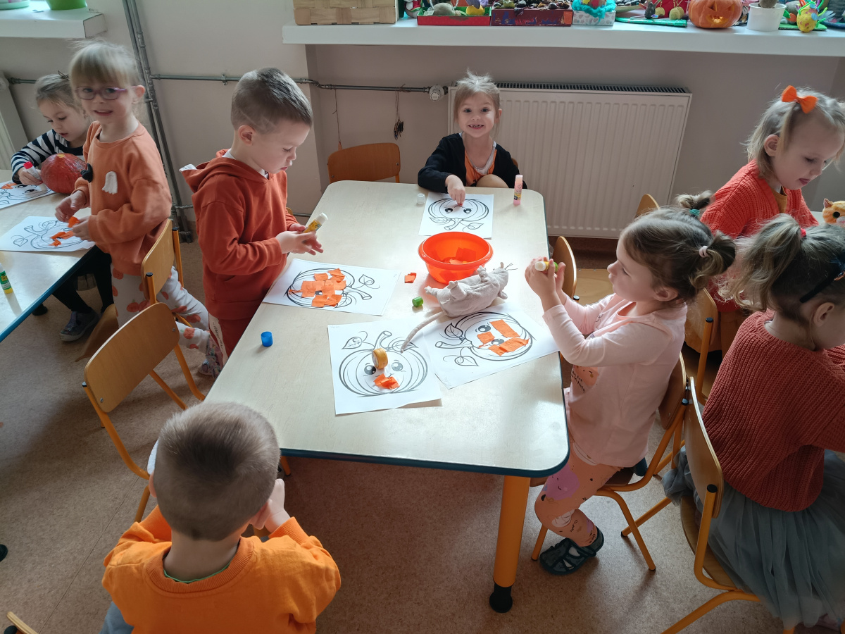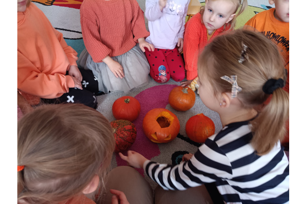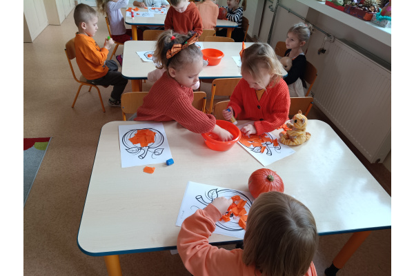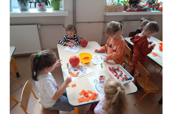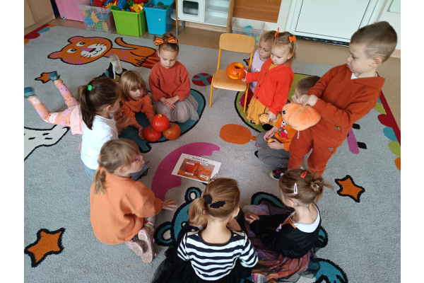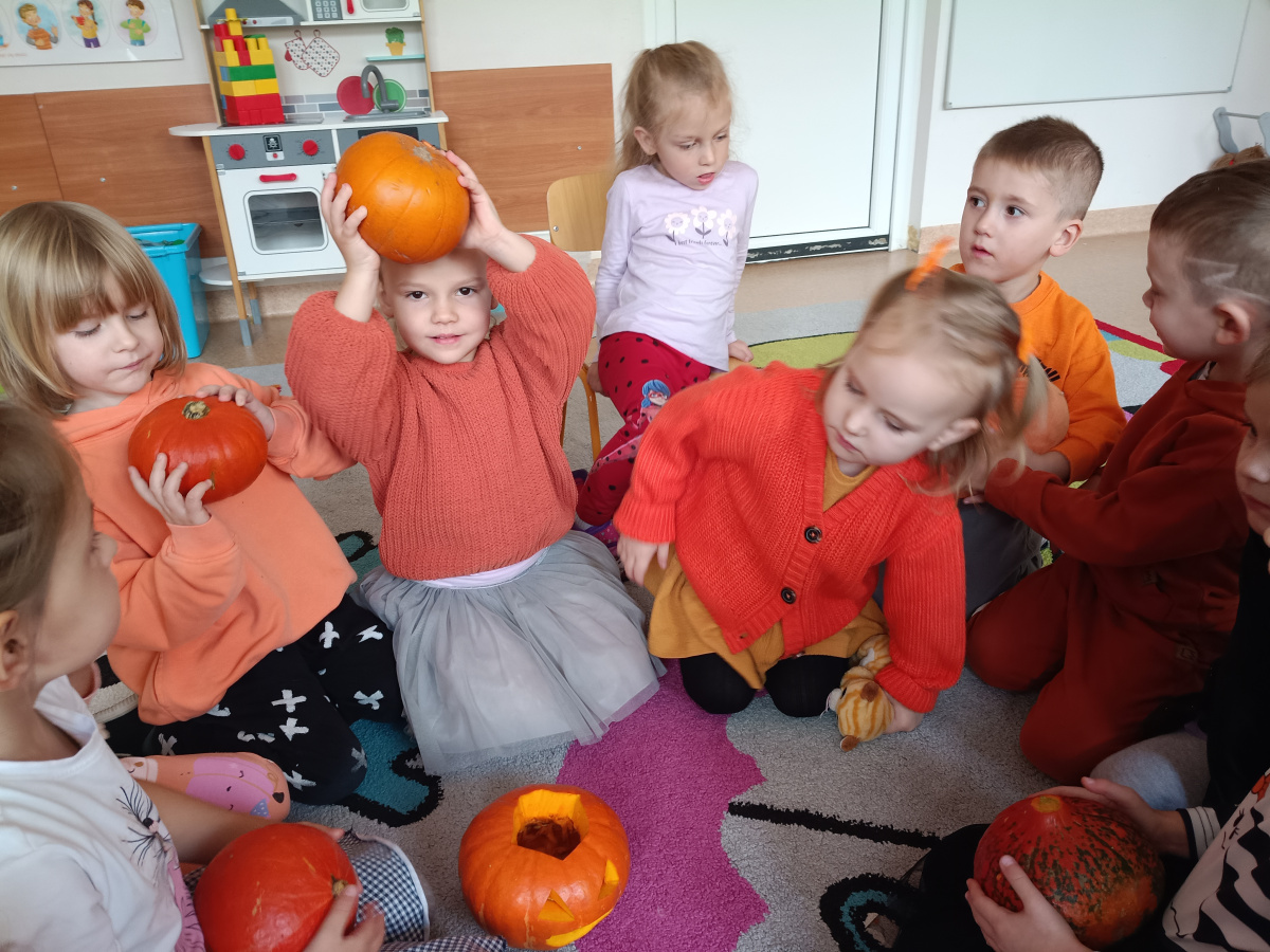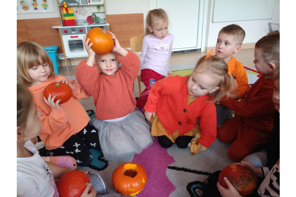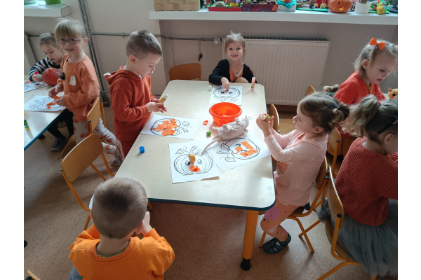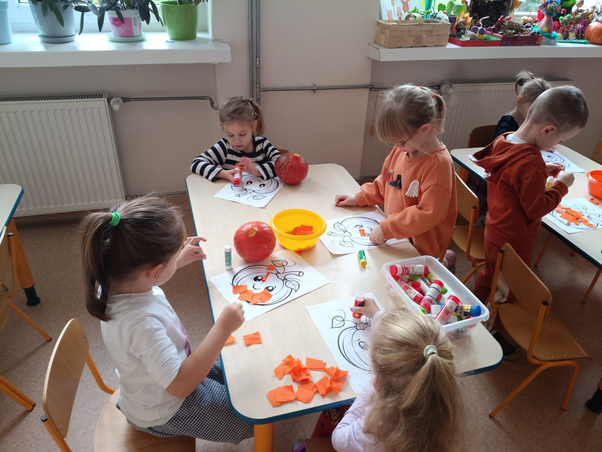 Podczas zajęć przedszkolaki poznawały różne odmiany dyni, oglądały je z bliska, porównywały kształty i kolory. Nie zabrakło też zabaw ruchowych, zagadek i dyniowych konkurencji. Dzieci brały udział w pracach plastycznych, tworząc swoje własne, wesołe dynie.