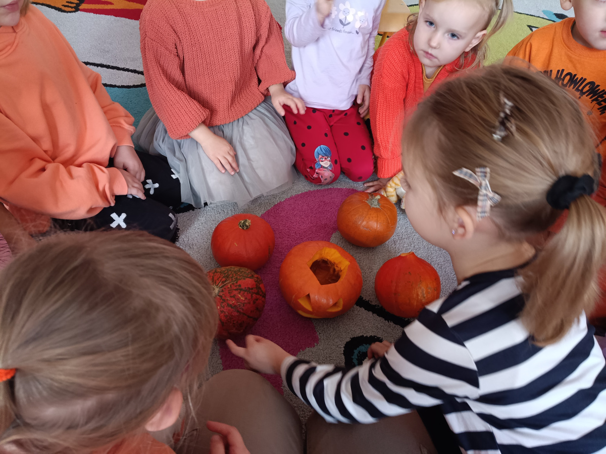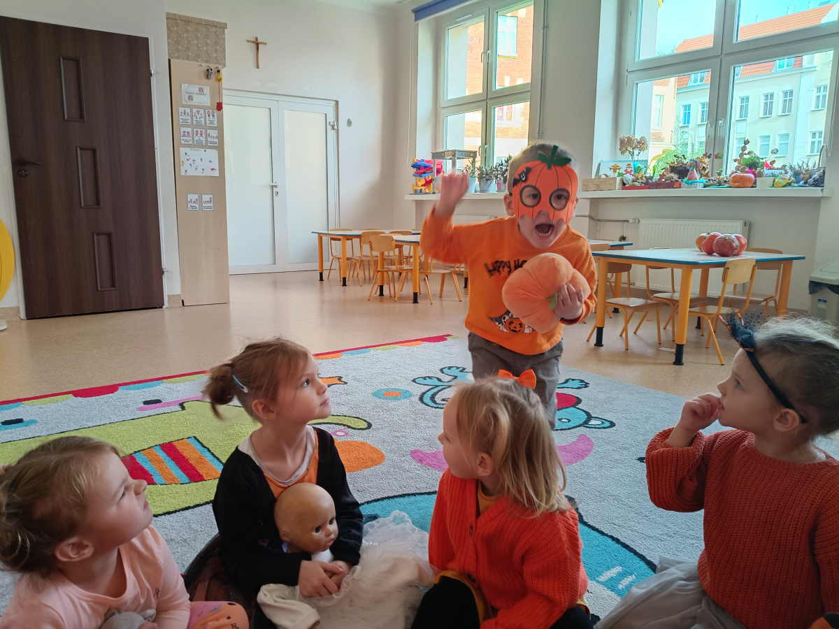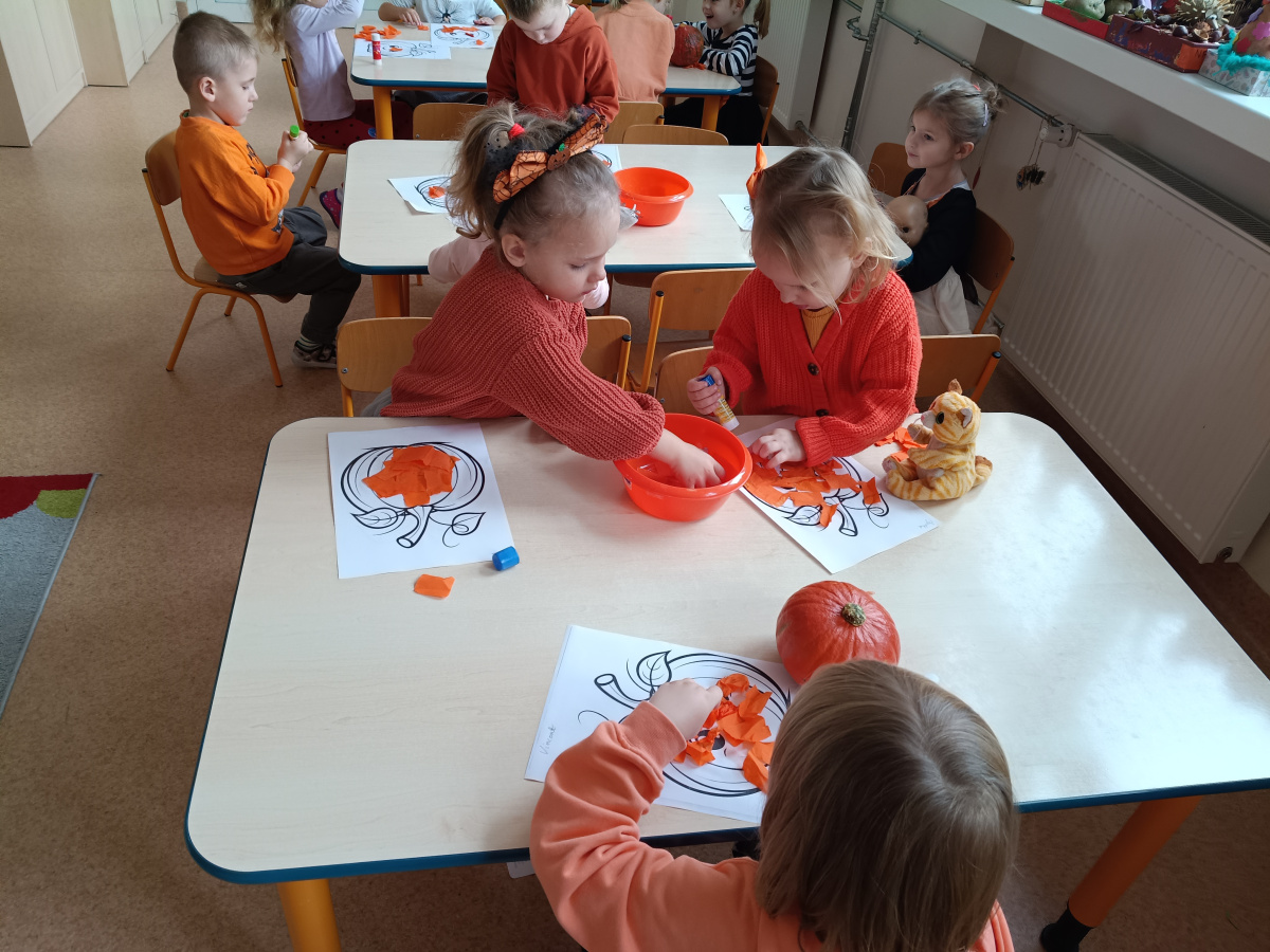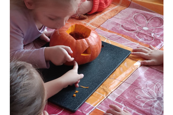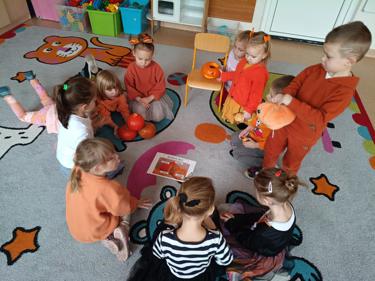 Podczas zajęć przedszkolaki poznawały różne odmiany dyni, oglądały je z bliska, porównywały kształty i kolory. Nie zabrakło też zabaw ruchowych, zagadek i dyniowych konkurencji. Dzieci brały udział w pracach plastycznych, tworząc swoje własne, wesołe dynie.