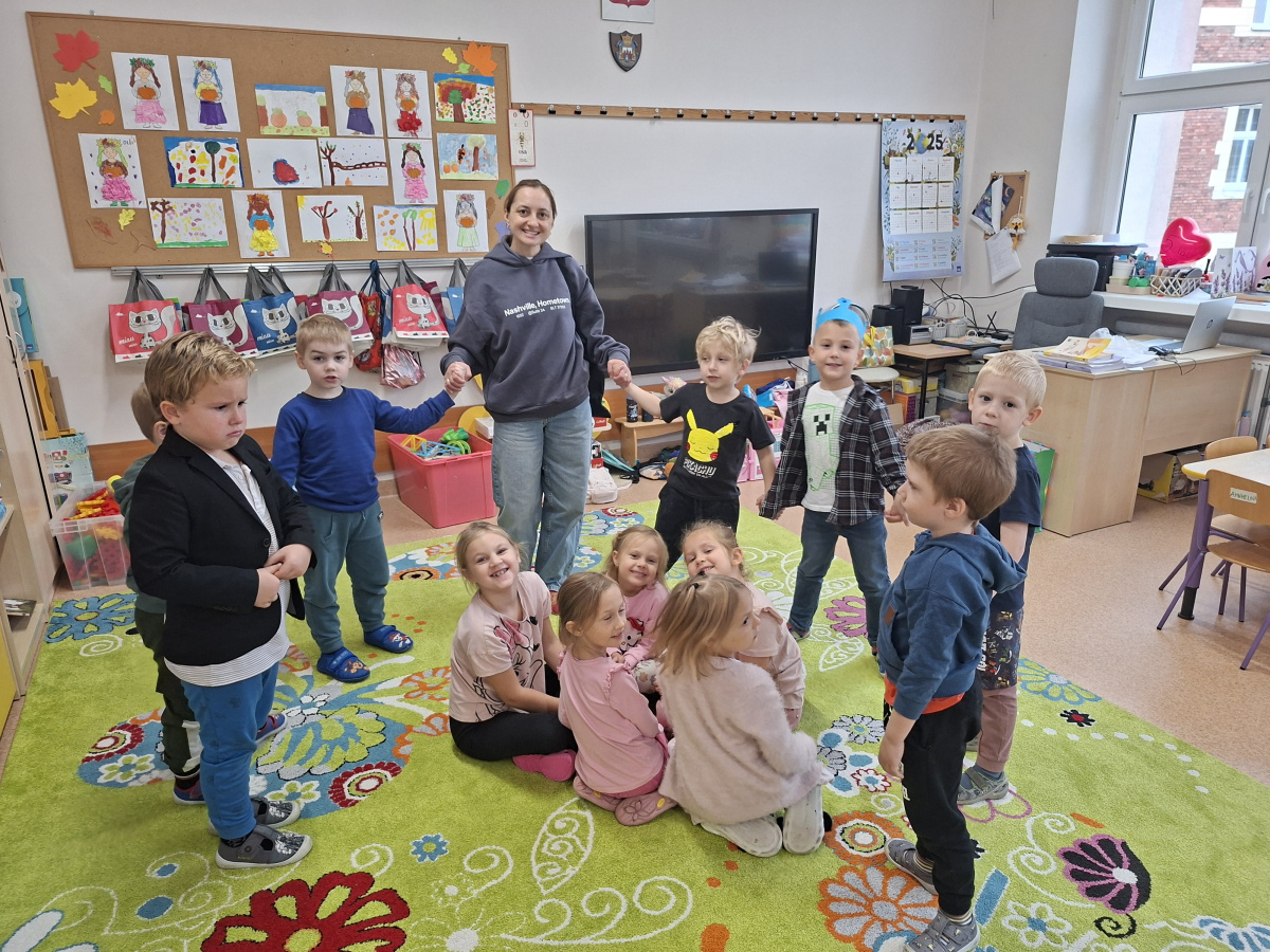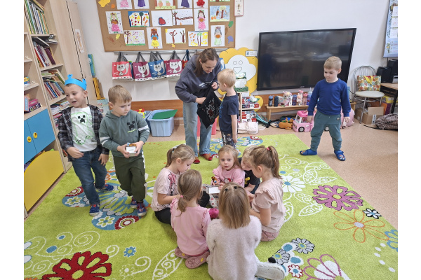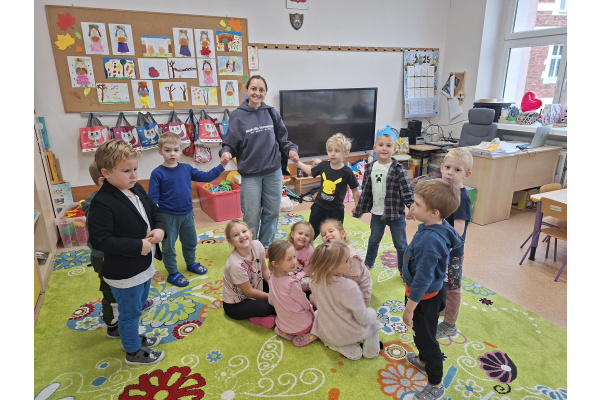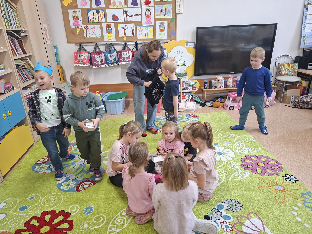 Wszystkiego najlepszego dla naszych dziewczynek! Chłopcy uściskali i obdarowali prezentami swoje koleżanki.