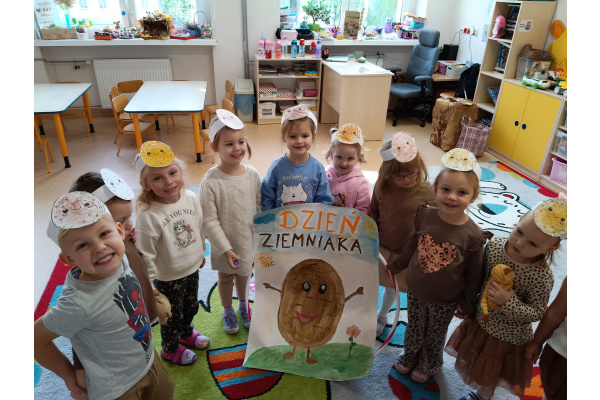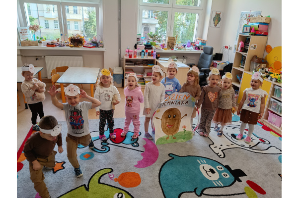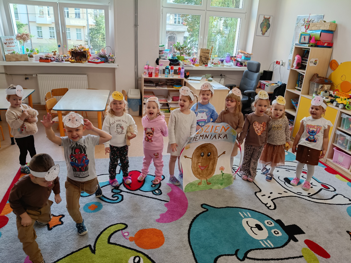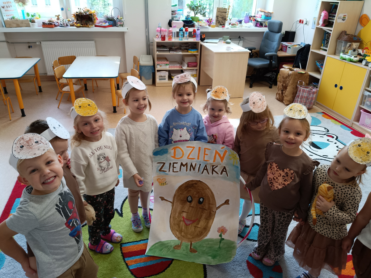 W grupie „Sówki” obchodziliśmy radośnie Dzień Ziemniaka! Jedną z największych atrakcji była fotobudka w kształcie ziemniaka, w której każdy mógł się na chwilę „przeobrazić” w prawdziwego Króla Ziemniaka.