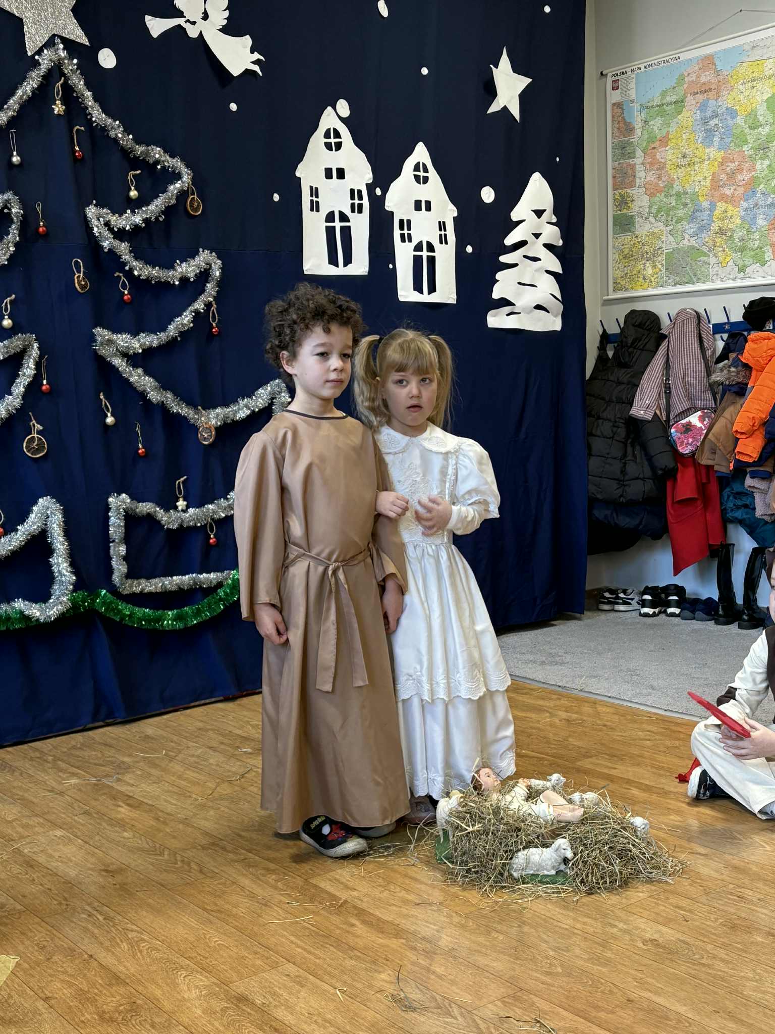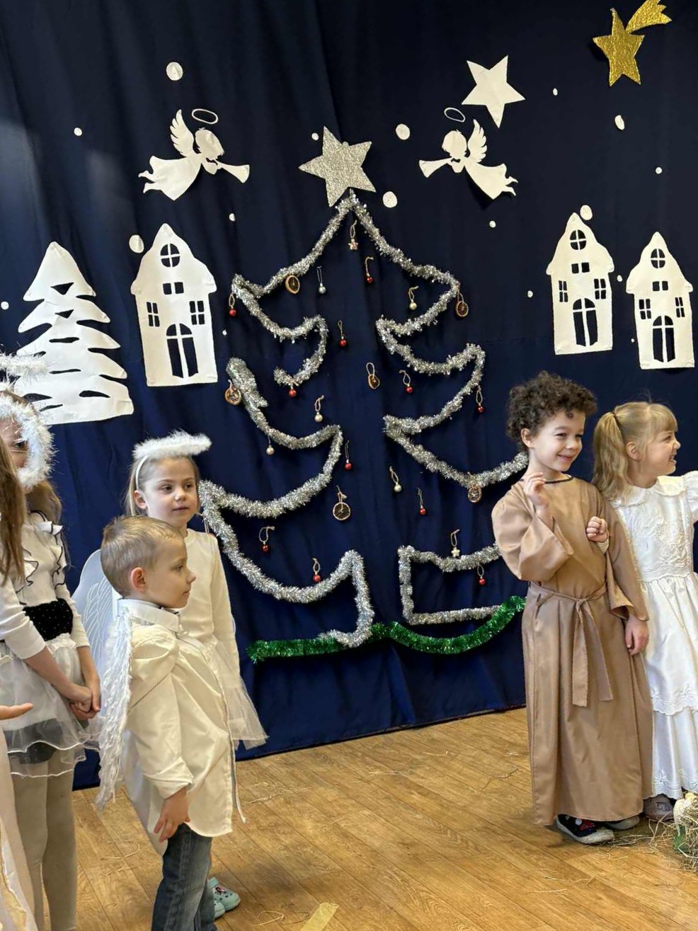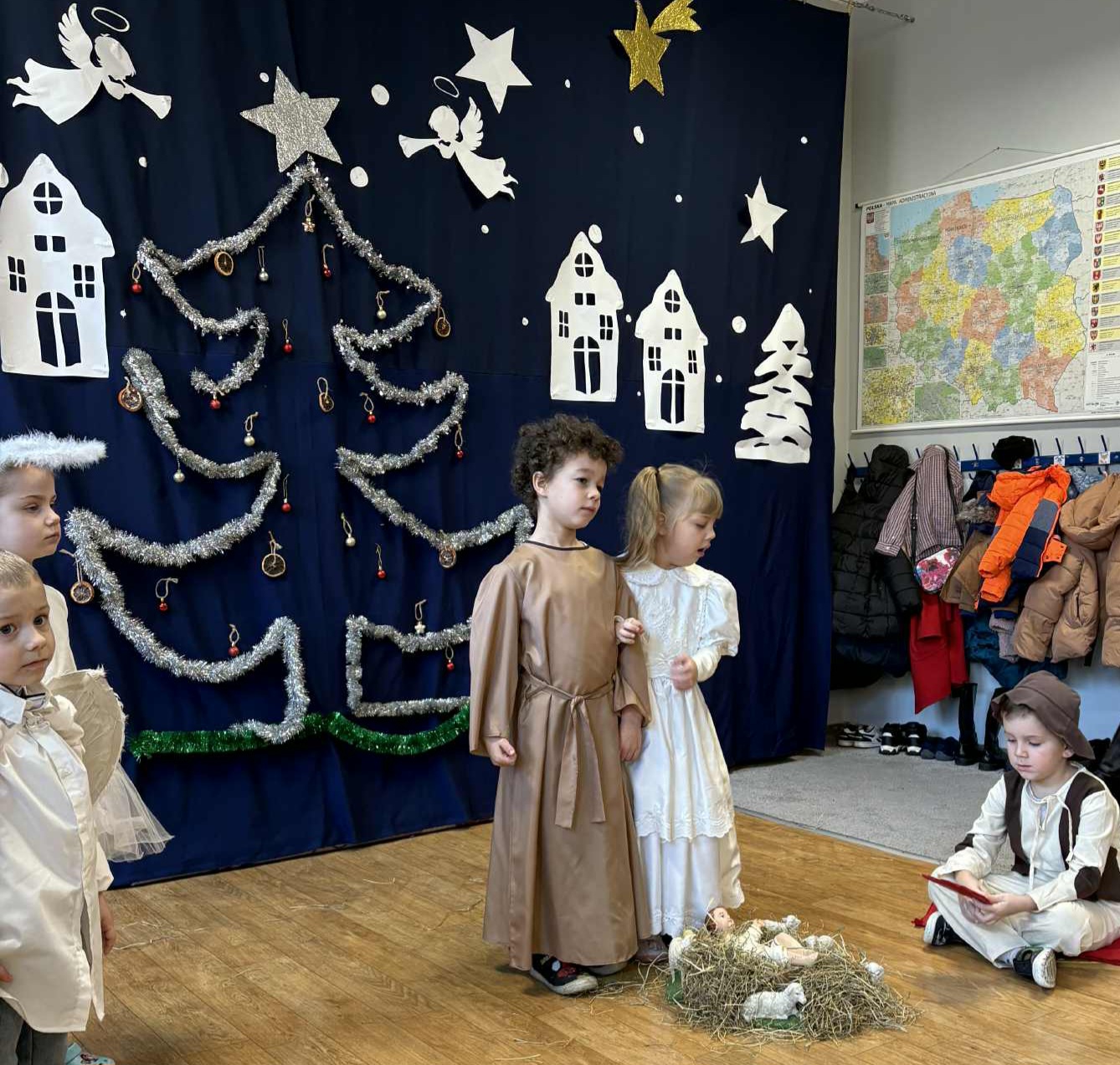 Wigilia Bożego Narodzenia to jeden z najpiękniejszych dni w roku. Przedstawienie Jasełek w wykonaniu przedszkolaków wprowadziło zebranych gości w świąteczny czas. Dzieci z wielkim przejęciem wygłaszały swoje role, z radością śpiewały kolędy i pastorałki. Świąteczny nastrój podkreślały niecodzienne stroje dzieci, świąteczna dekoracja oraz żłóbek z figurką Dzieciątka. Mali aktorzy zaprezentowali swoje talenty, które na koniec nagrodzone zostały gromkimi brawami. Spotkanie zwieńczył świąteczny poczęstunek, podczas którego życzyliśmy sobie nawzajem rodzinnych, spokojnych i ciepłych Świąt Bożego Narodzenia!
