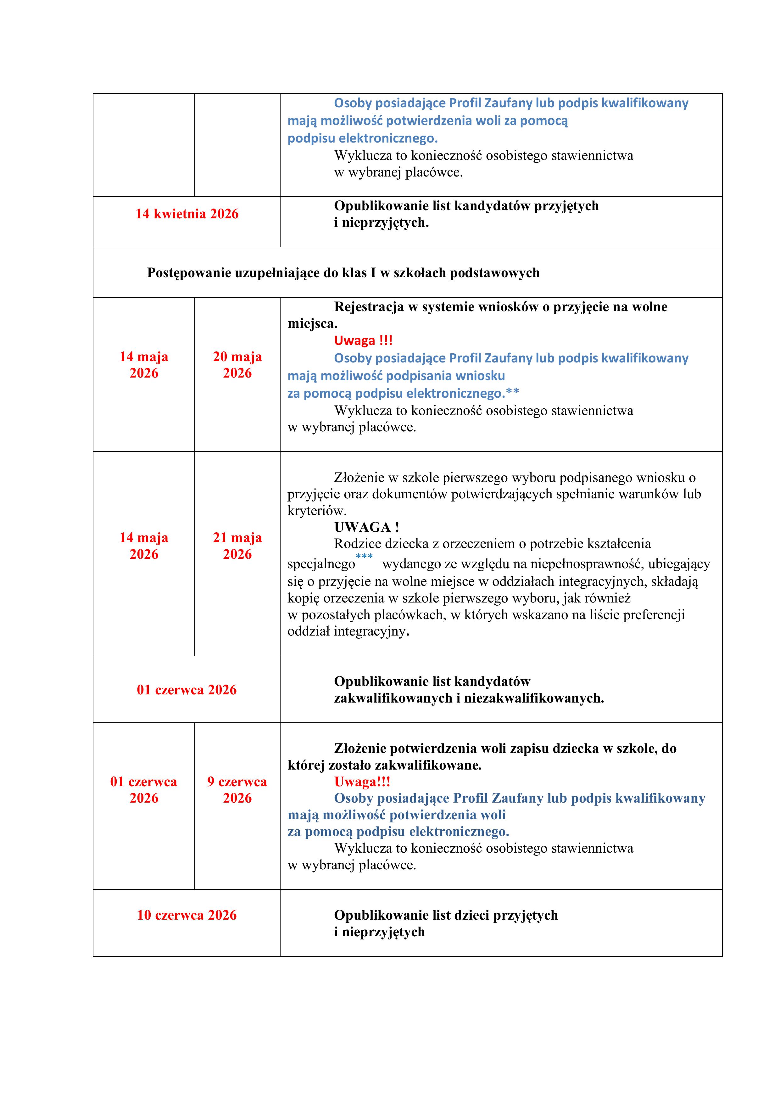 Terminy nabór szkoły ponadpodstawowe