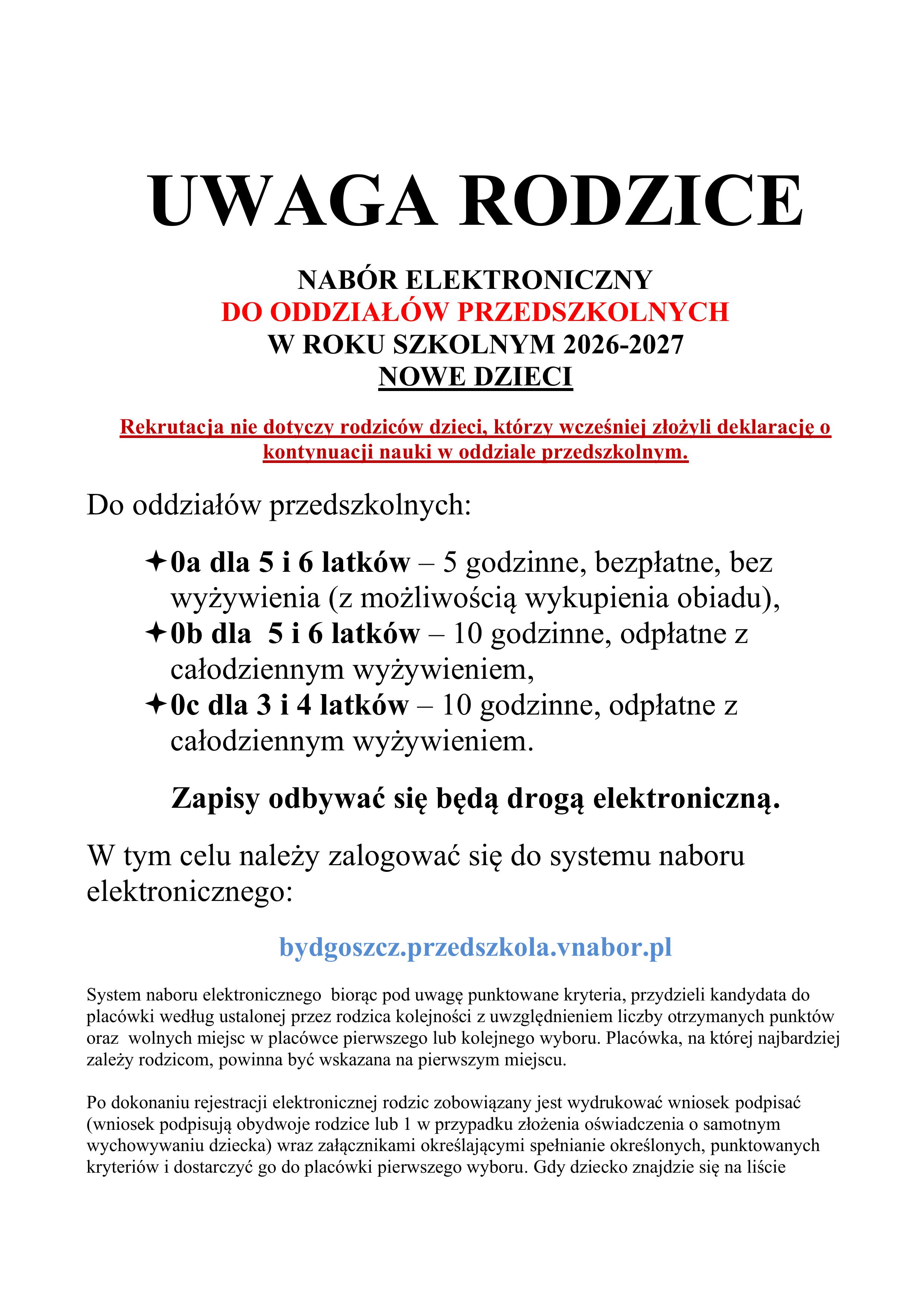 NABÓR ELEKTRONICZNY DO ODDZIAŁÓW PRZEDSZKOLNYCH W ROKU SZKOLNYM 2026-2027 NOWE DZIECI
