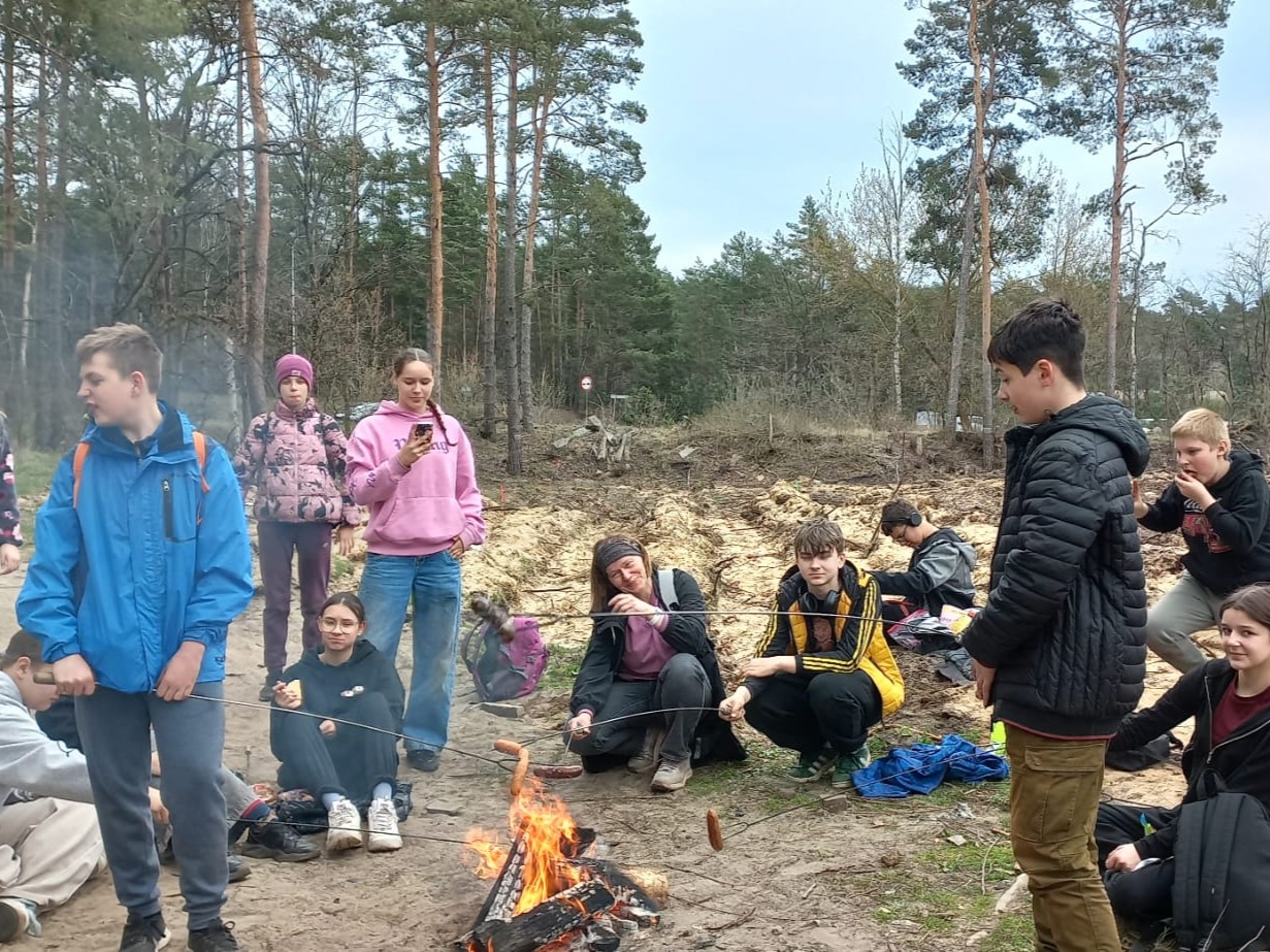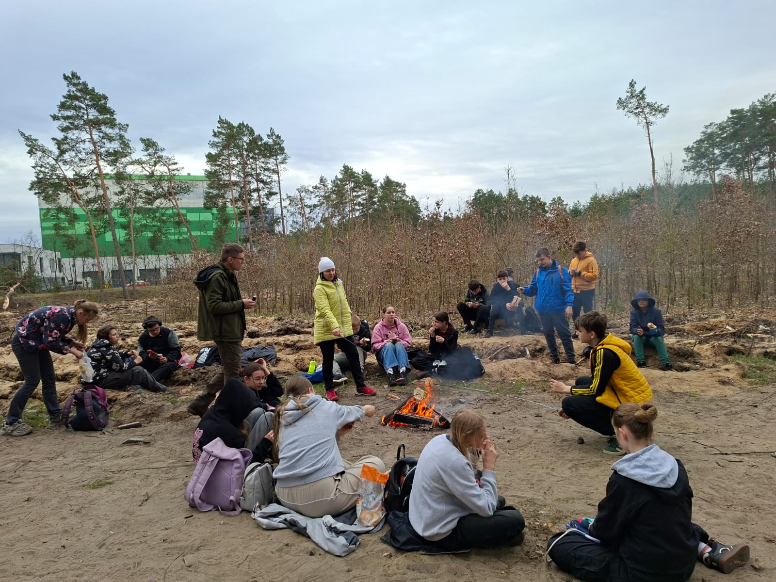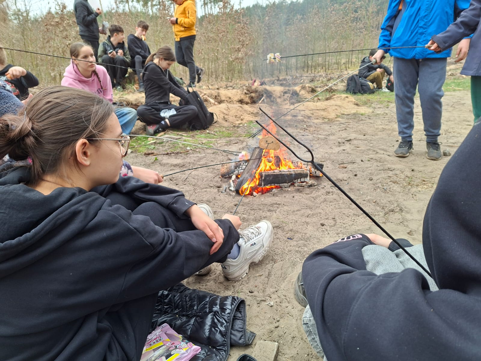 Po ciężkiej pracy na uczniów czekała miła niespodzianka – wspólne ognisko, podczas którego można było upiec kiełbaski i odpocząć. Był to doskonały moment na integrację i podsumowanie całego dnia.