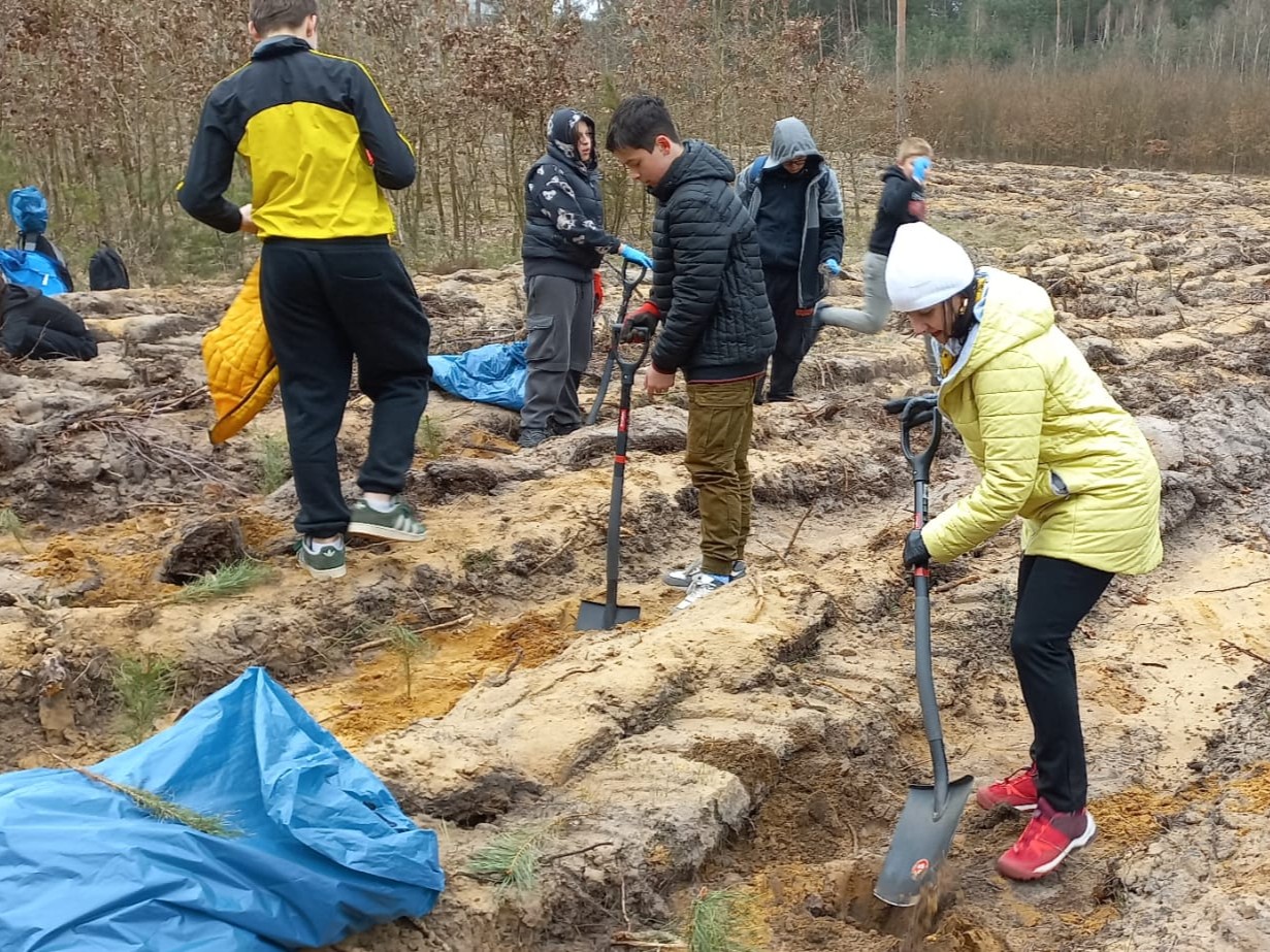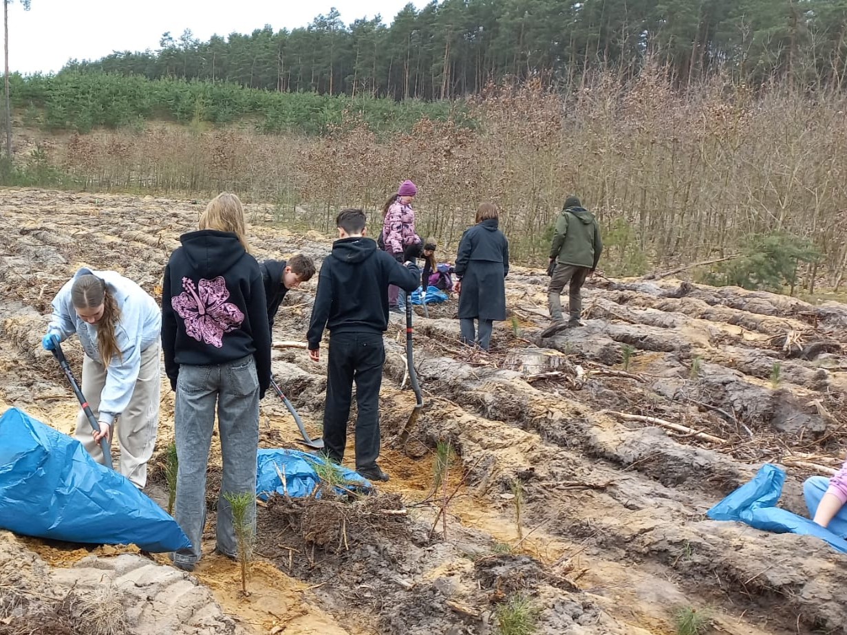 Dnia 14 kwietnia uczniowie klasy 6b wzięli udział w wyjątkowej akcji sadzenia lasu. Wydarzenie odbyło się w przyjaznej atmosferze i było nie tylko okazją do aktywnego spędzenia czasu na świeżym powietrzu, ale także ważną lekcją troski o środowisko naturalne.