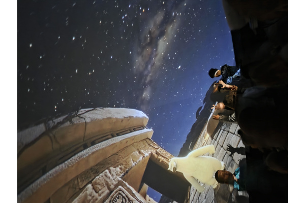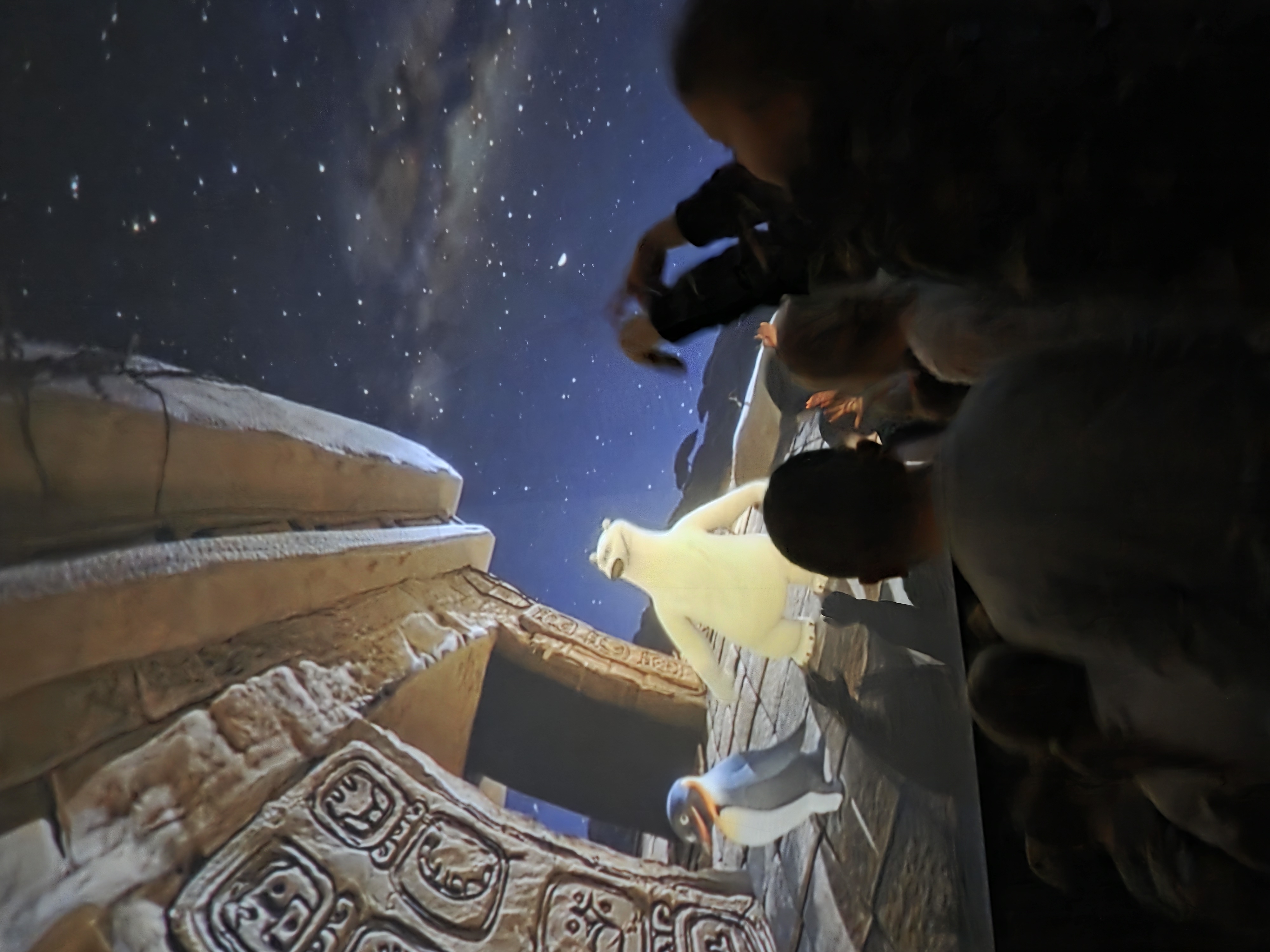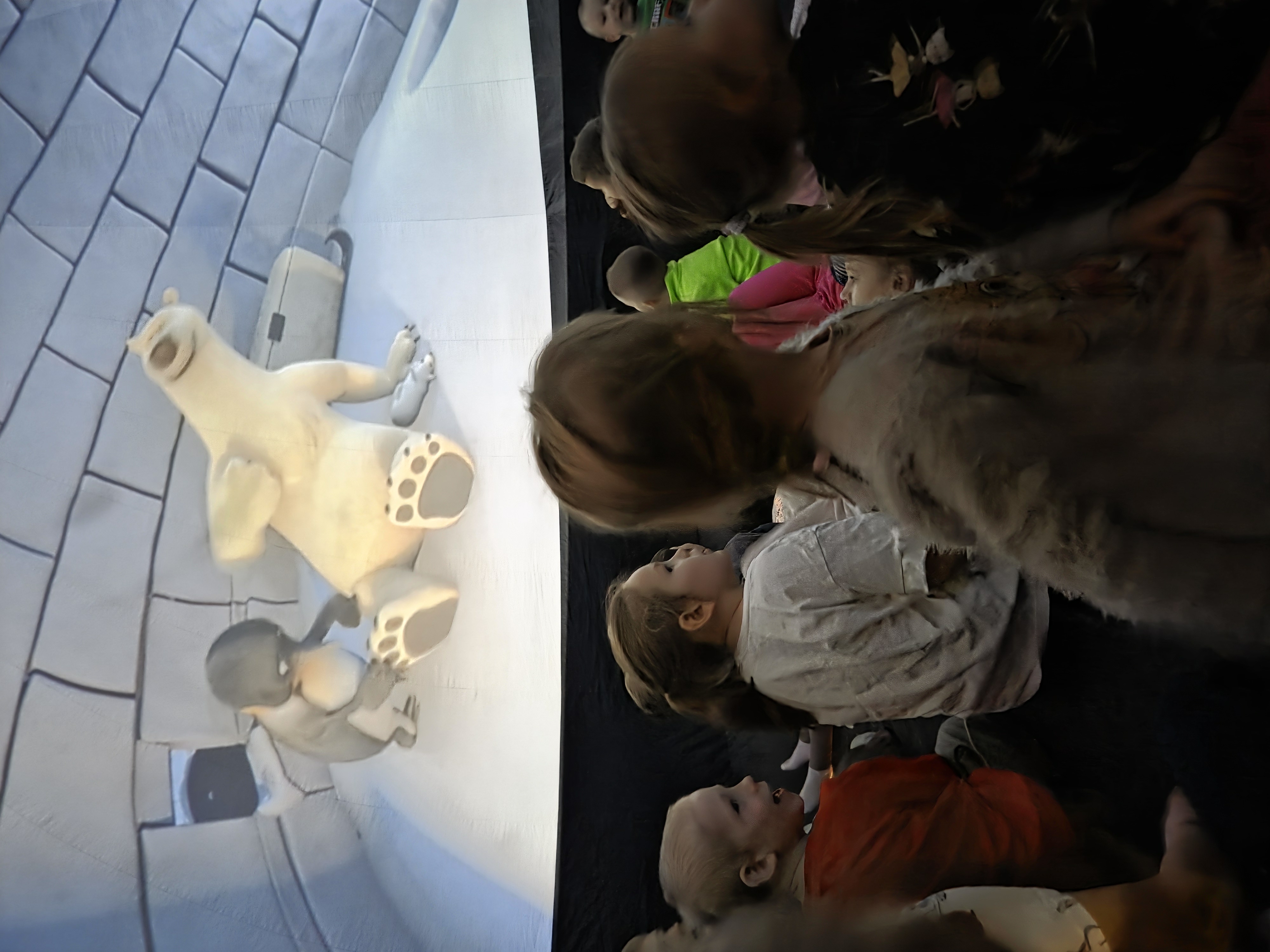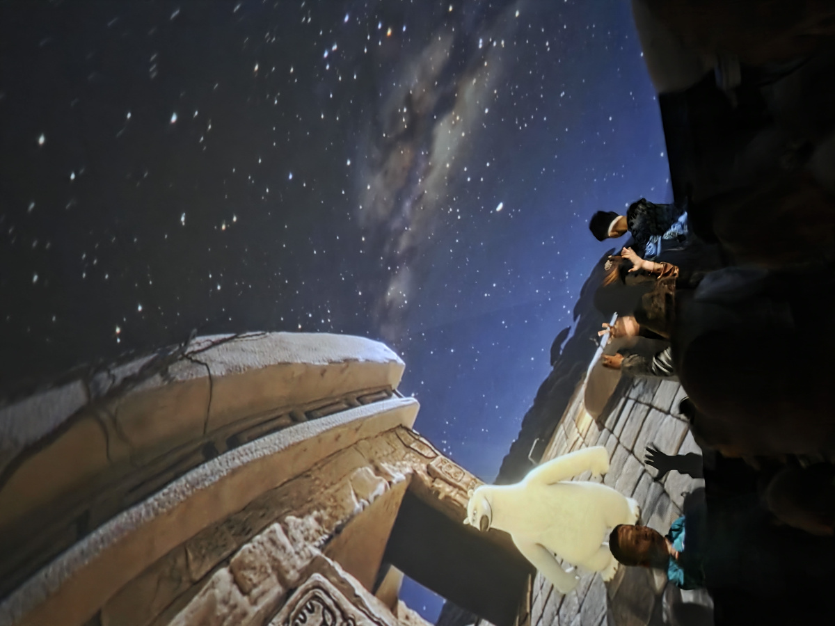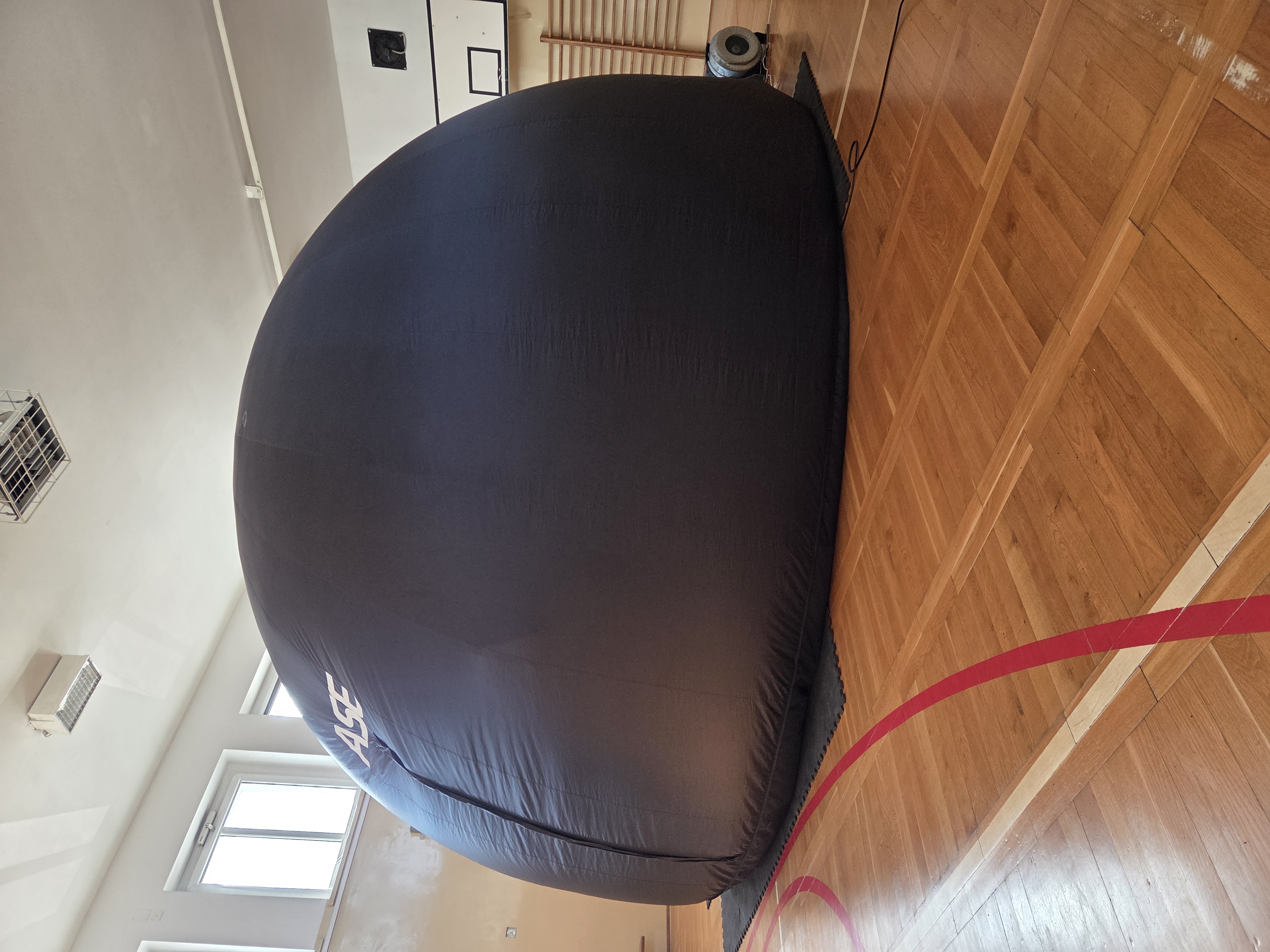 Filmy sferyczne –mobilne planetarium. Przedszkolaki miały mozliwość obejrzenia bajki pod kątem 360º.