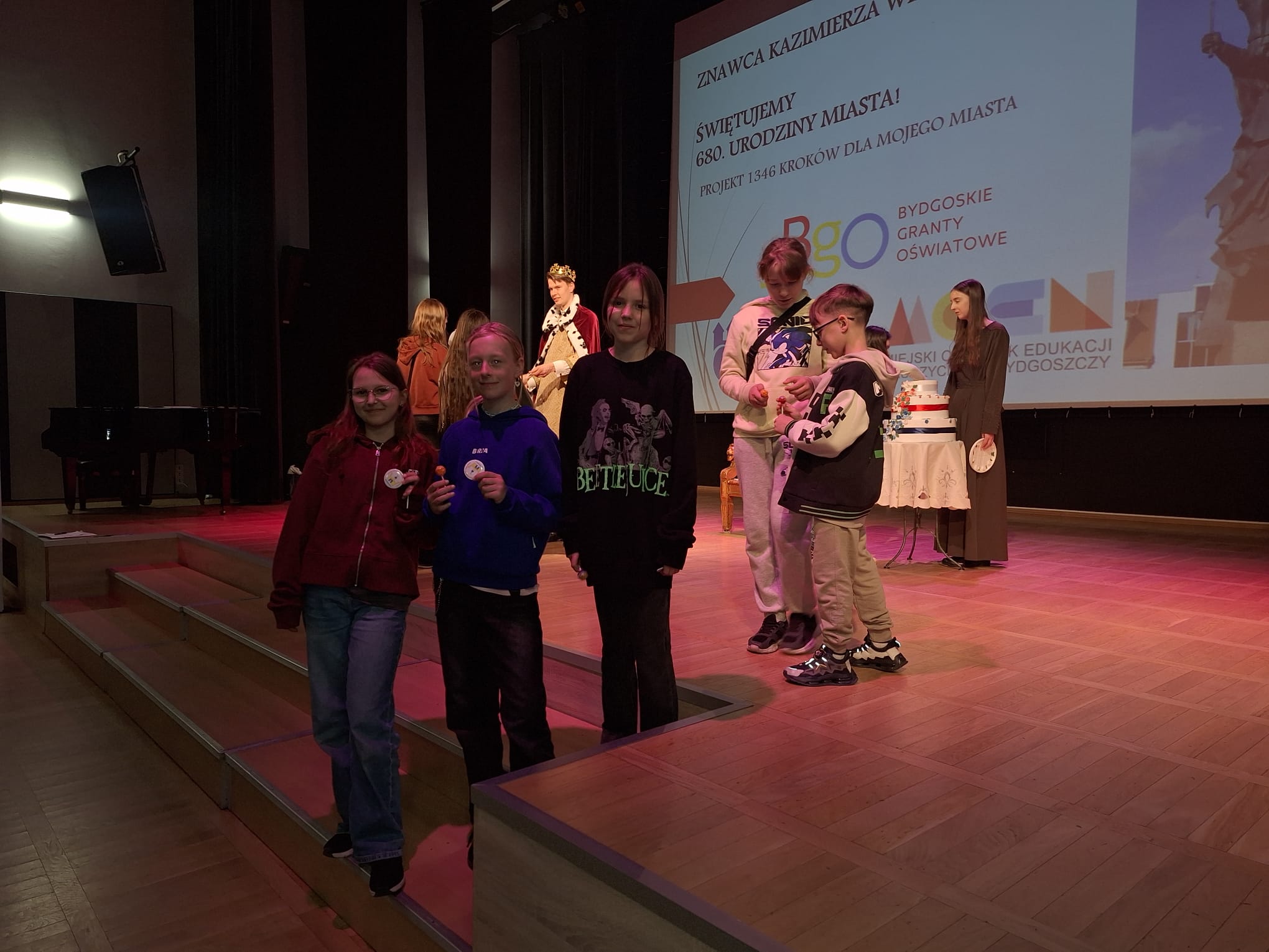 Gra zakończyła się w Pałacu Młodzieży, gdzie na uczniów czekał Król Kazimierz. Na zakończenie wydarzenia wręczył on uczestnikom pamiątkowe odznaki.