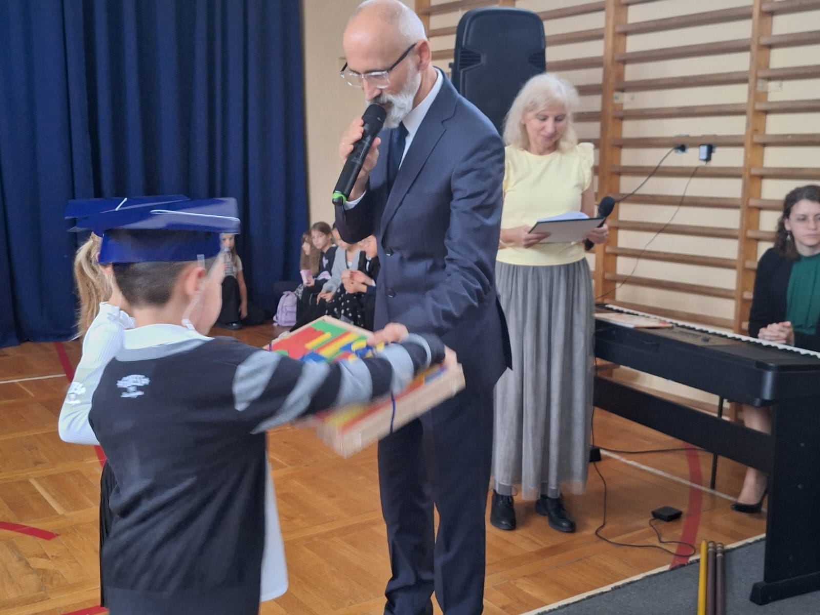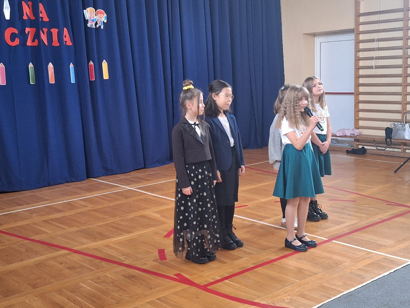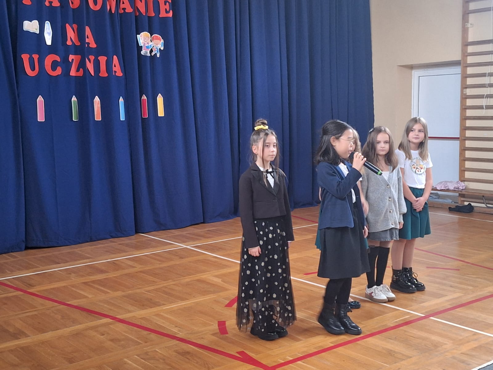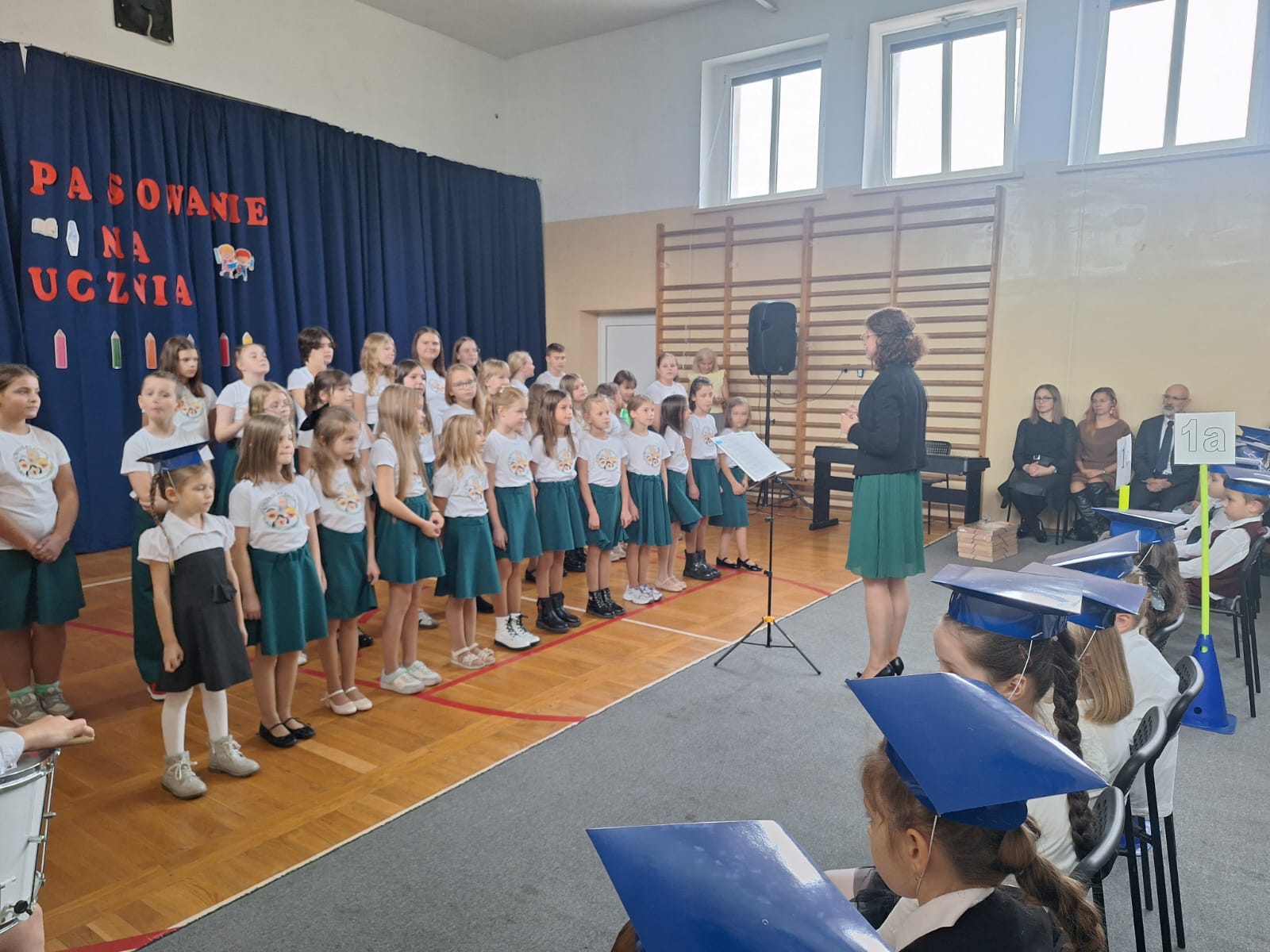 Najmłodsi uczniowie z powagą i radością wstąpili 23 października 2025r. w szeregi naszej szkolnej społeczności. Były piękne występy chóru szkolnego, uczennic z klasy III a, uczniów klas I i oficjalne pasowanie na ucznia! To ważny moment, który na długo zostanie w pamięci dzieci i ich bliskich.