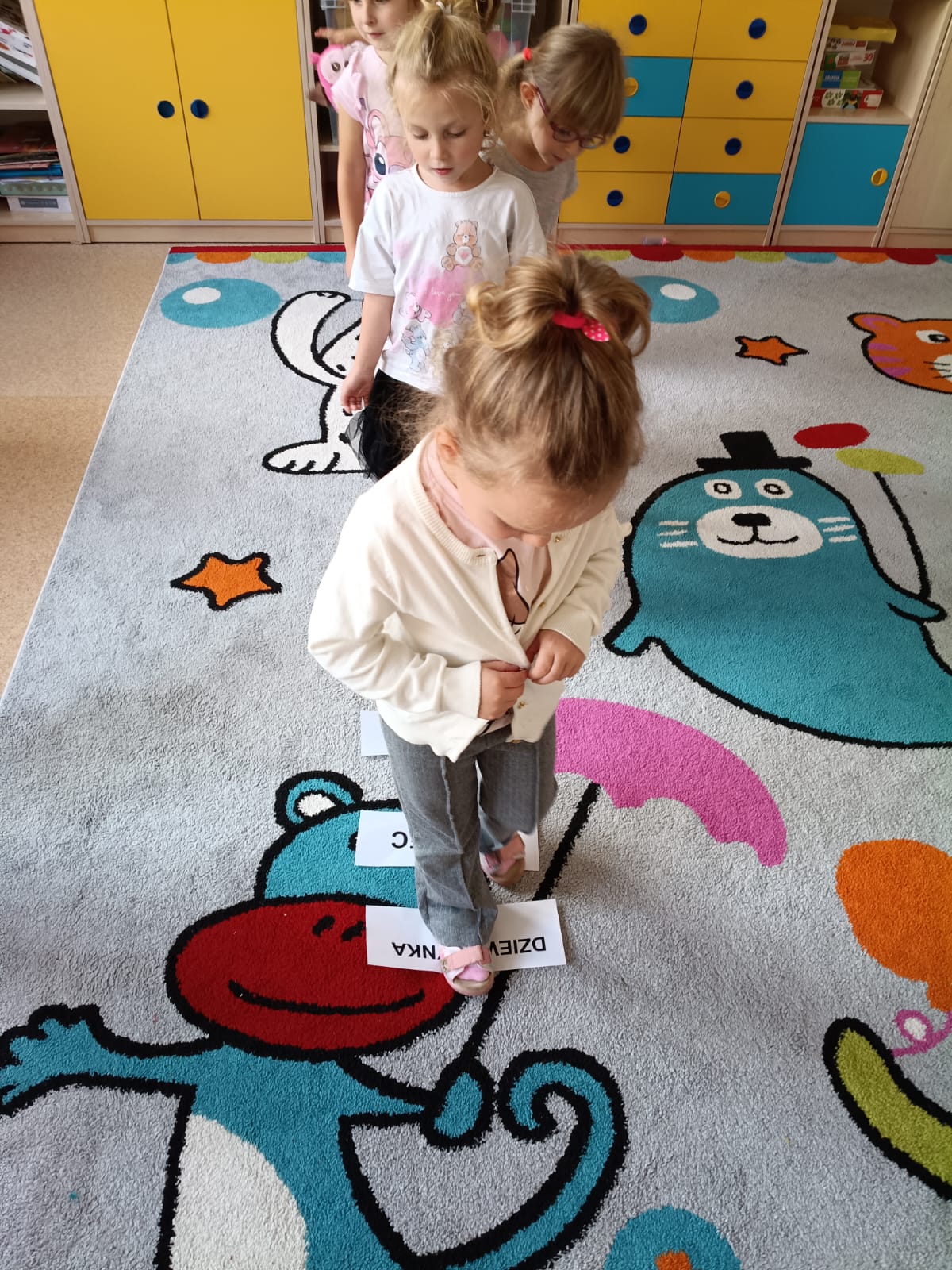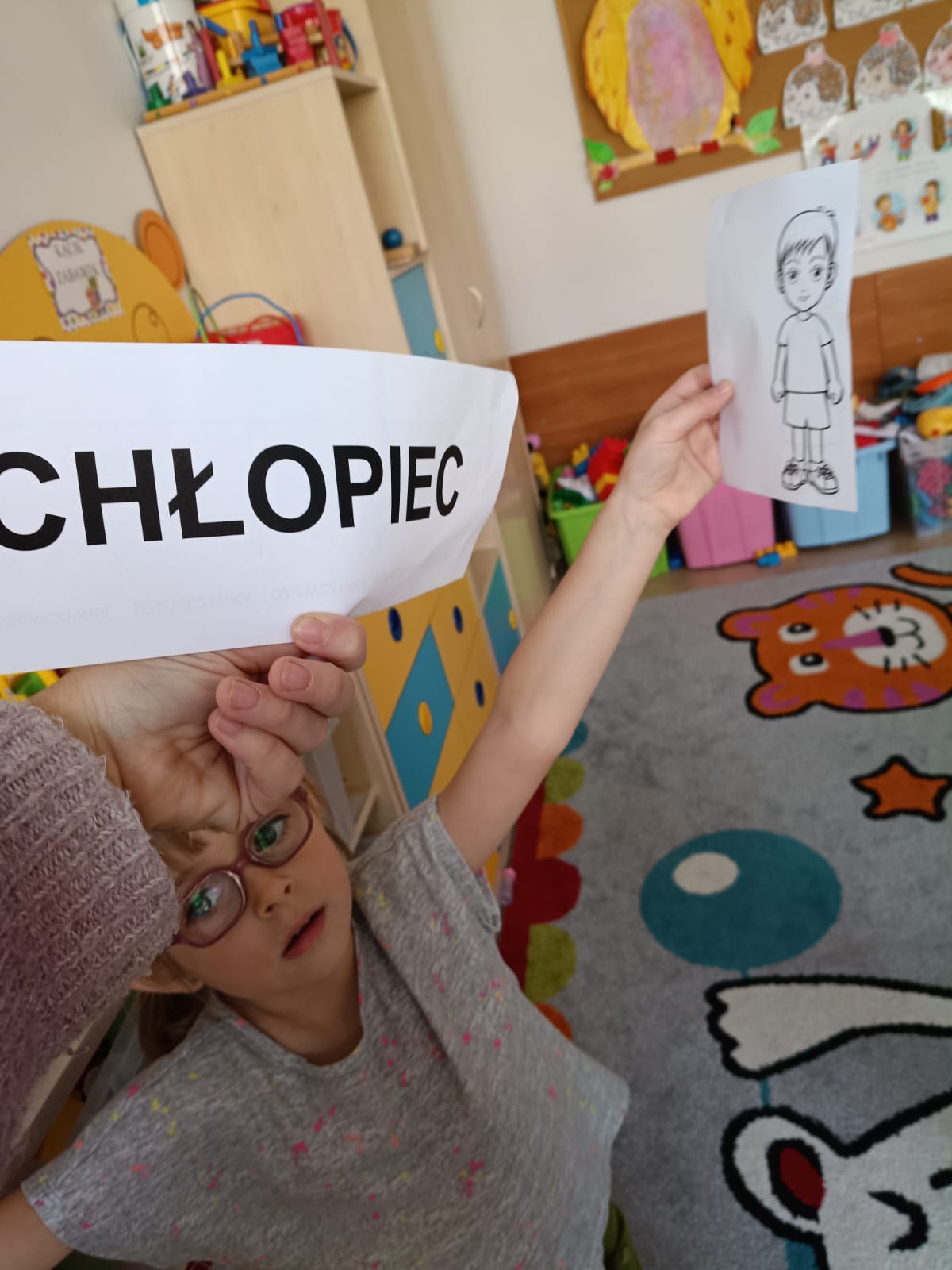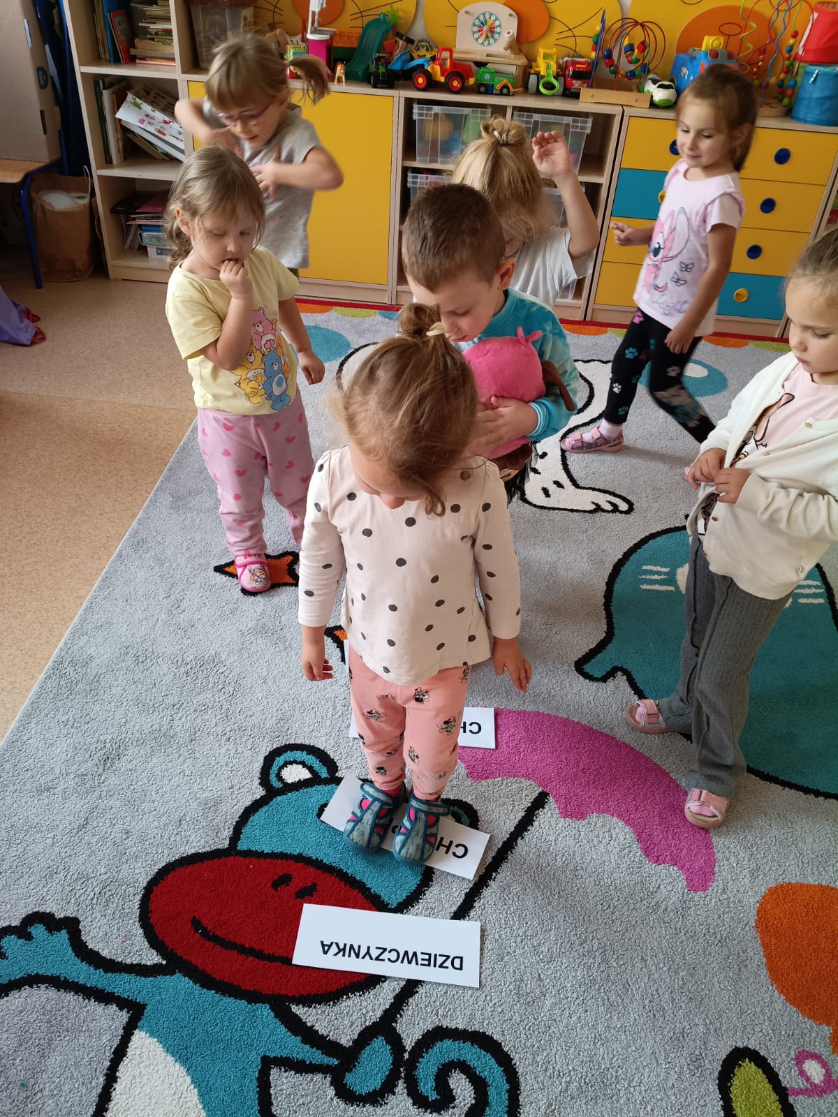 Potem przyszedł czas na czytanie – poznawaliśmy i czytaliśmy nasze pierwsze wyrazy: chłopiec i dziewczynka.