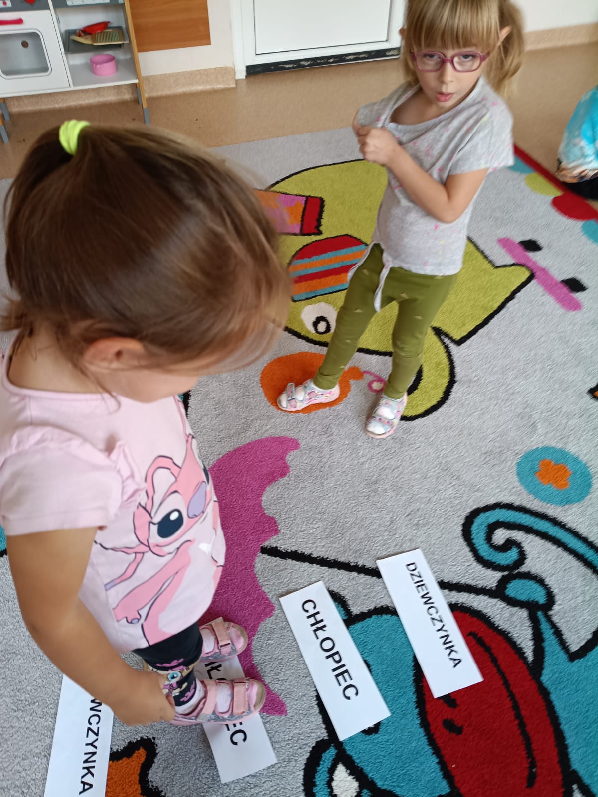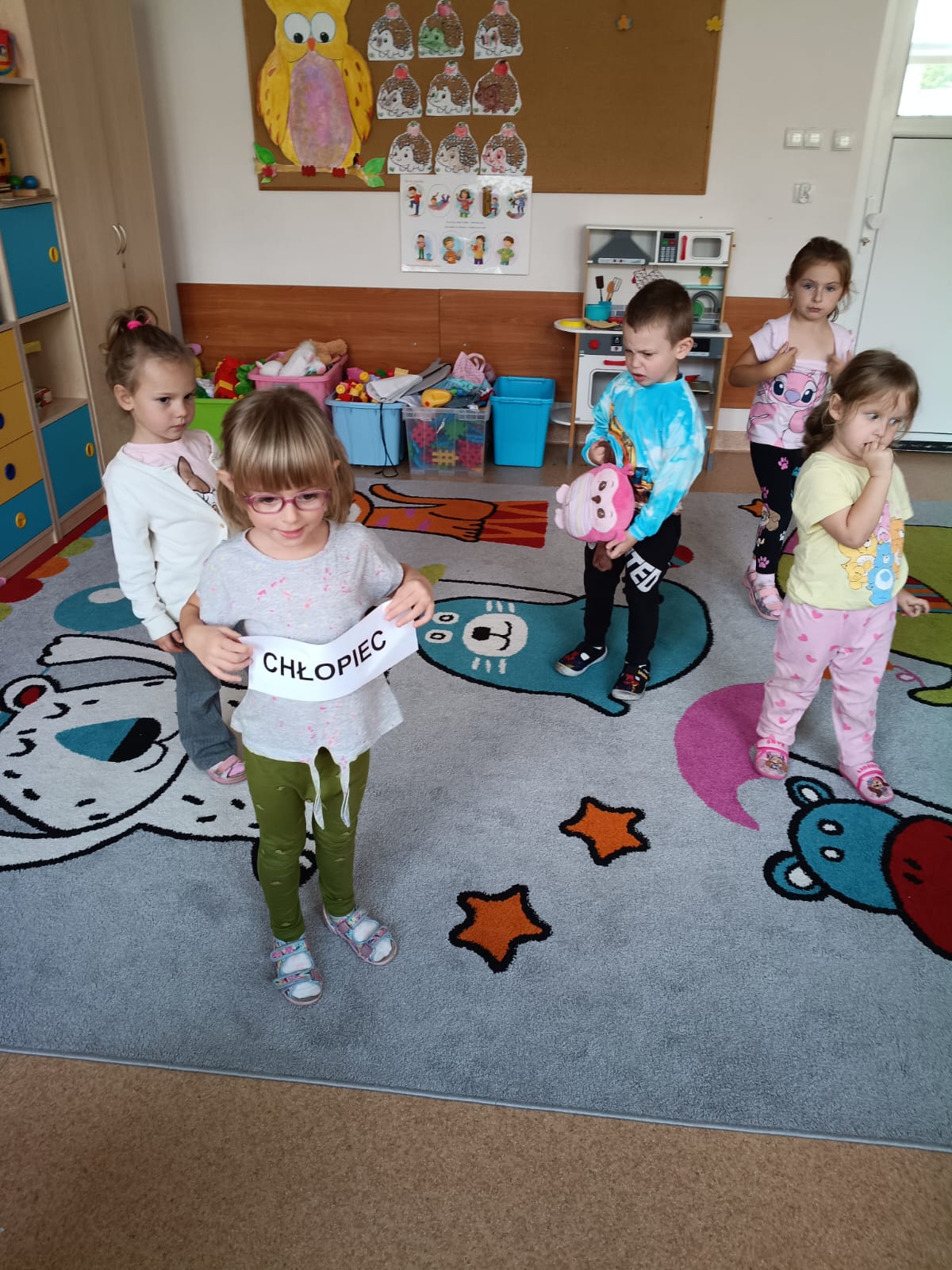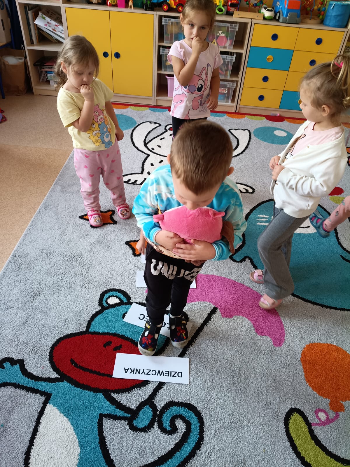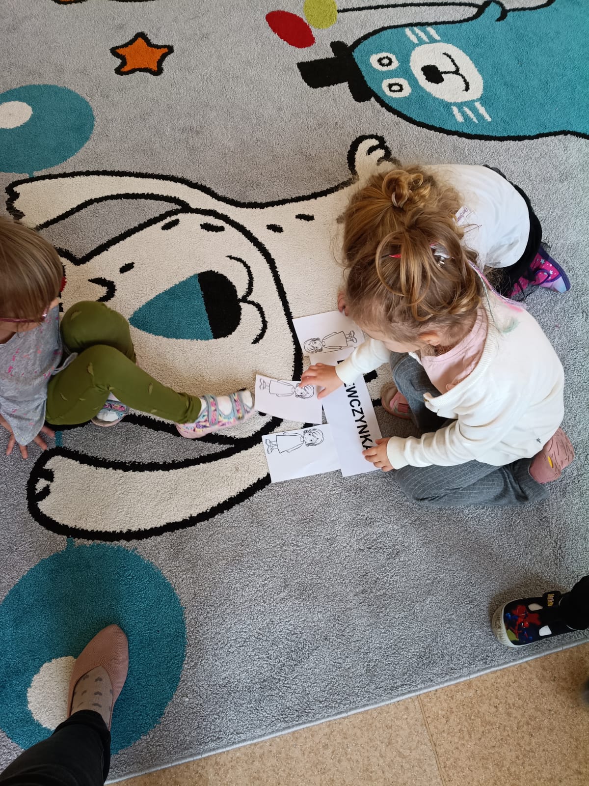 Potem przyszedł czas na czytanie – poznawaliśmy i czytaliśmy nasze pierwsze wyrazy: chłopiec i dziewczynka.