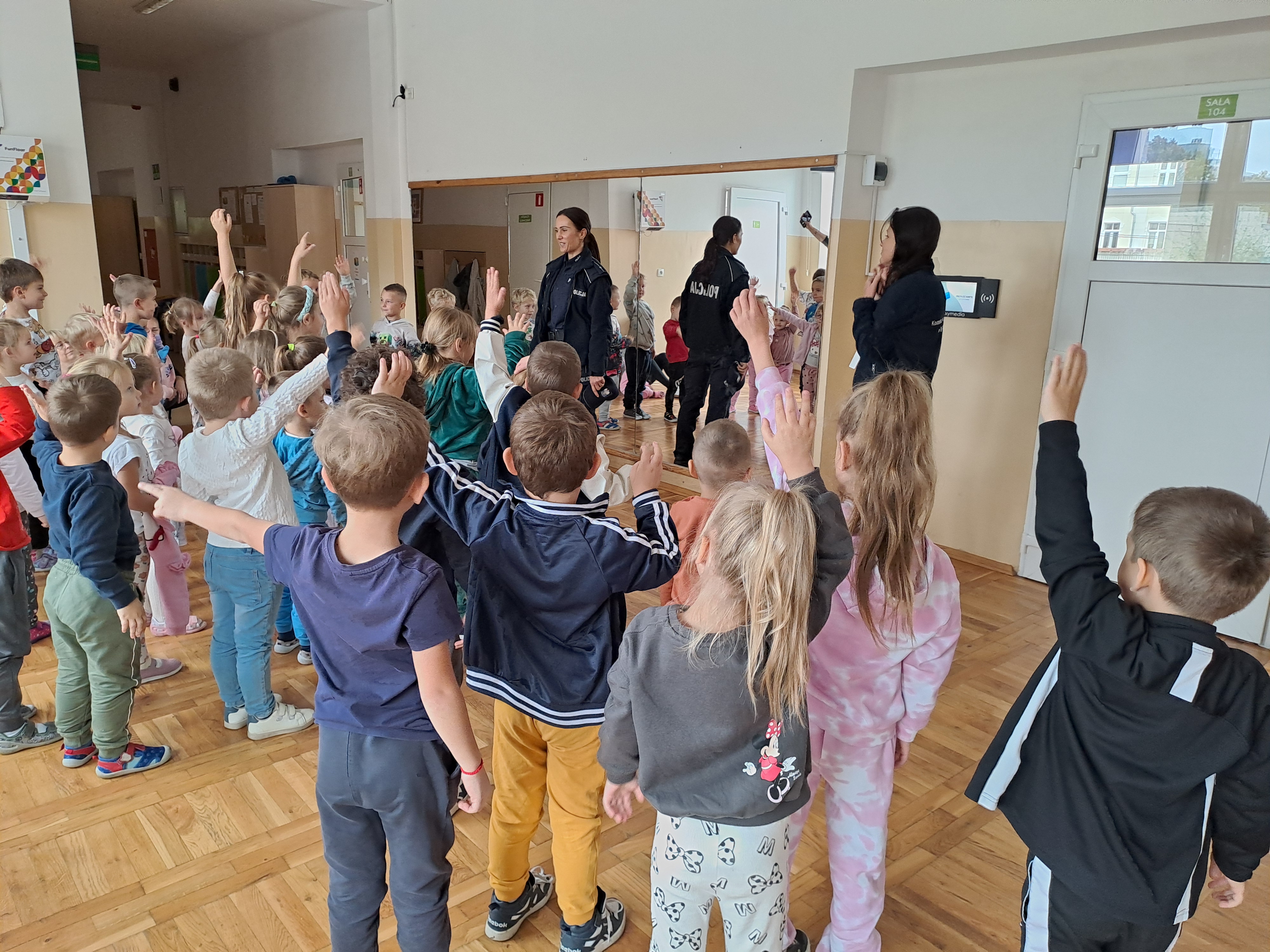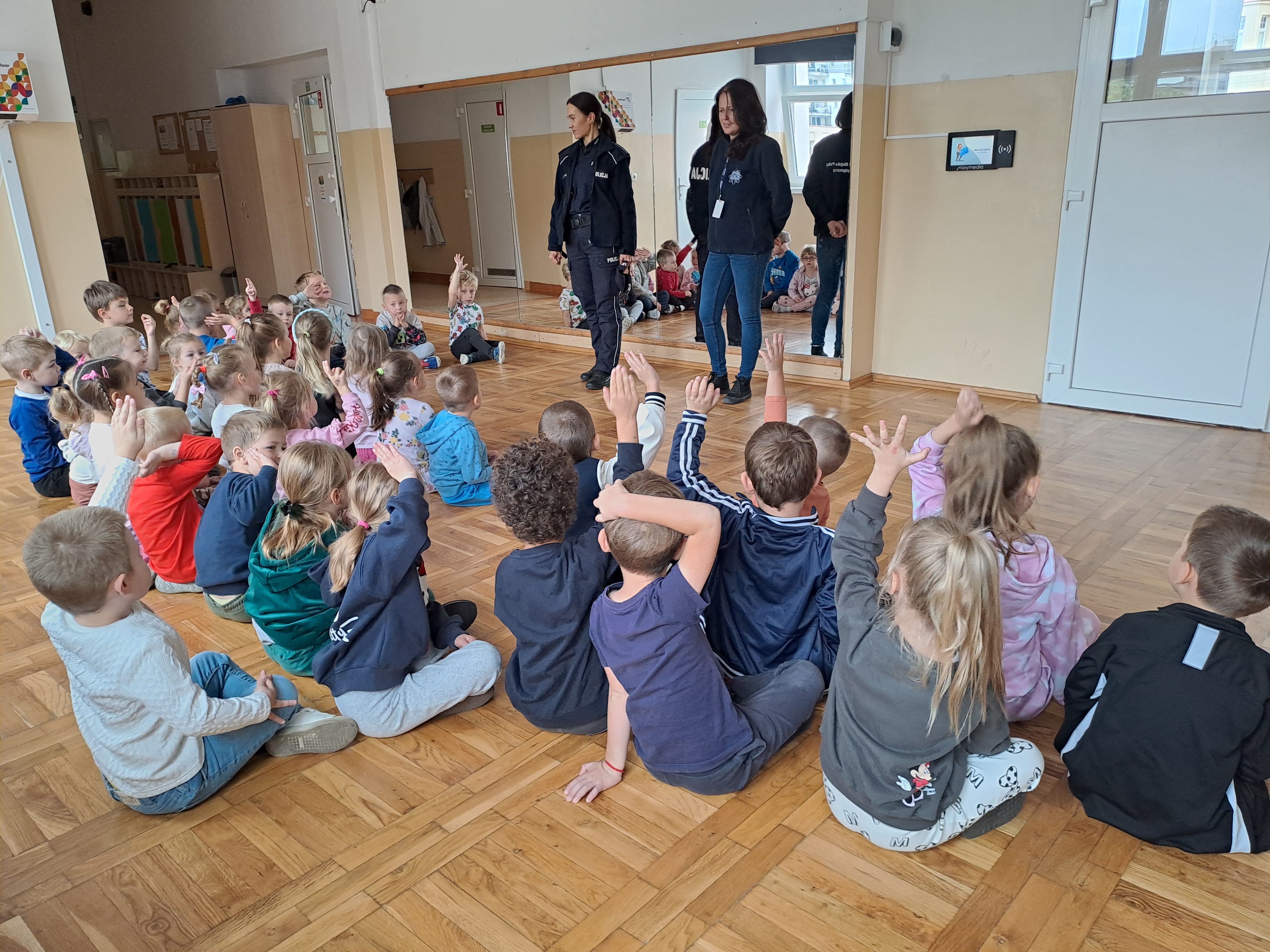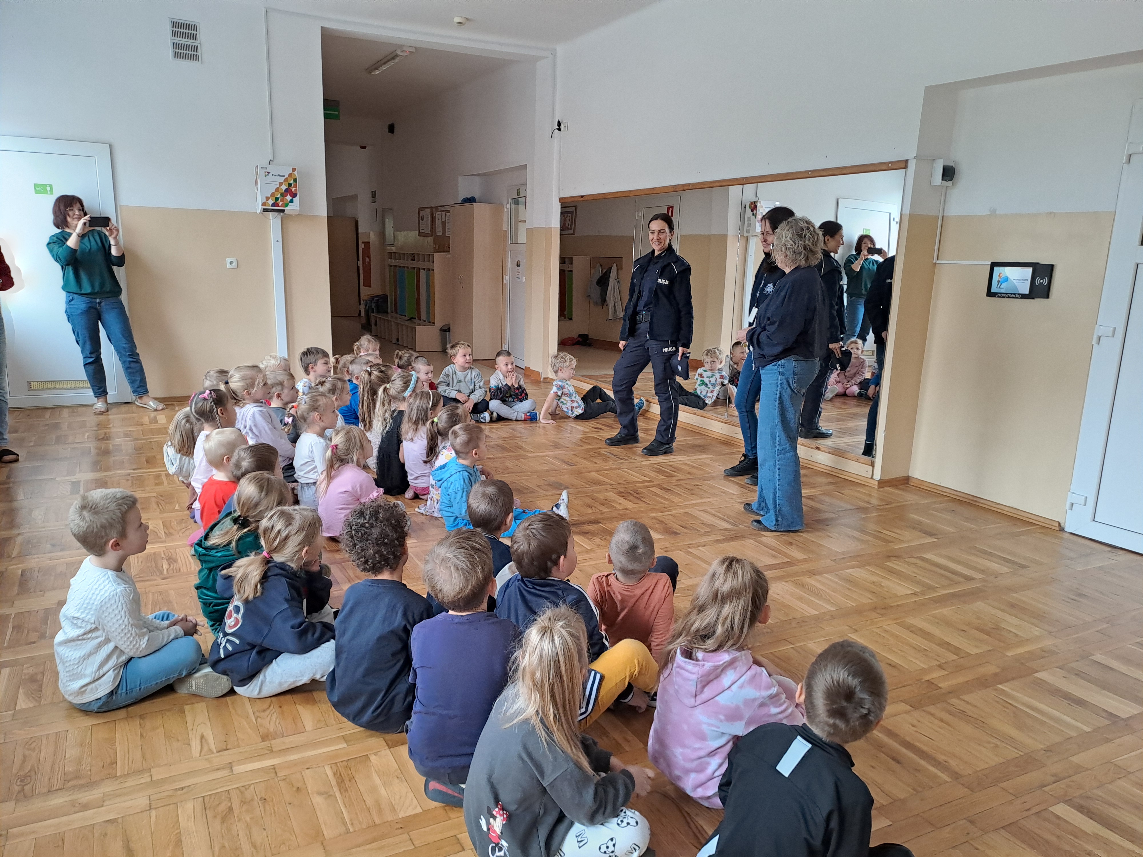 W dniu dzisiejszym, 30 września, dzieci z grupy 0A spotkały się z przedstawicielkami Policji z komisariatu Bydgoszcz-Blonie i uczestniczyły w pogadance nt. Bezpiecznego poruszania się na drodze, prawidłowych zachowań w kontaktach z obcymi oraz poznawały i utrwalały numery alarmowe.