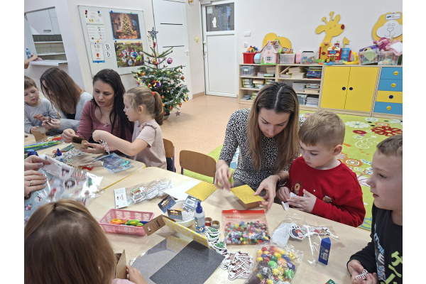 Święta Bożego Narodzenia to szczególny czas. I właśnie po to, aby i w naszym przedszkolu zagościła świąteczna atmosfera w grudniu zorganizowałyśmy warsztaty Bożonarodzeniowe z udziałem rodziców. Celem było wykonanie ozdób świątecznych na kiermasz Bożonarodzeniowy. Czas, który dzieci spędziły z rodzicami to bardzo cenne doświadczenie dla obu stron. Serdecznie dziękujemy rodzicom za przybycie i wspólnie spędzony czas.
