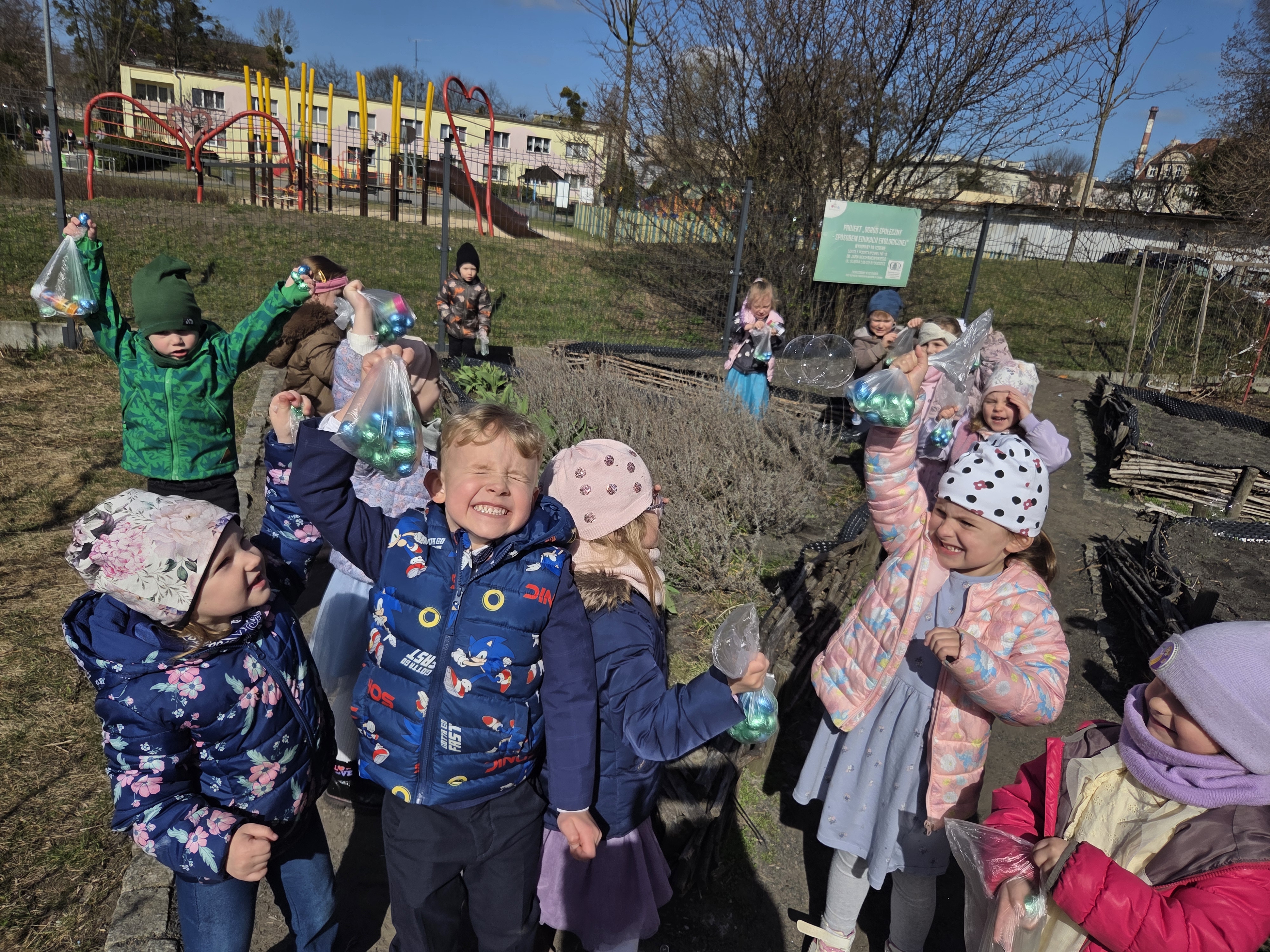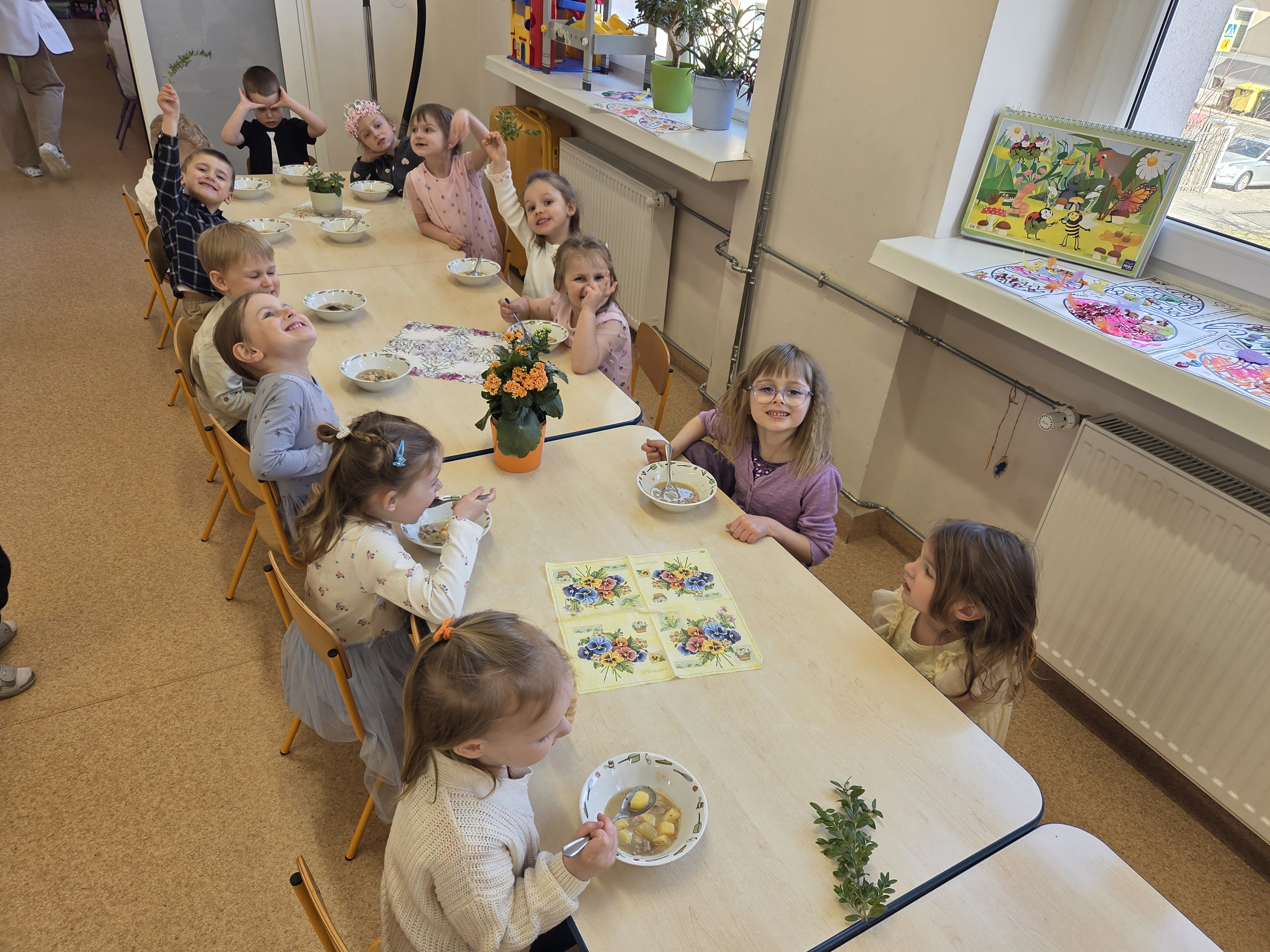Pierwszy kwietnia przyniósł dzieciom wiele niespodzianek i miłych wspomnień. Poranek rozpoczęliśmy od tradycyjnego śniadanka wielkanocnego, następnie wykonaliśmy piękne, kolorowe pisanki, po czym udaliśmy się do ogrodu przedszkolnego w poszukiwaniu czekoladowych jajek oraz prezentów od Zająca. Dodatkowe wrażenia i mnóstwo śmiechu zapewniły nam żarty pt. „Prima aprilis”.