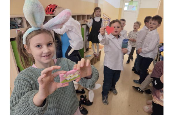 Wielkanocne zwyczaje, pisanki, szukanie zająca w ogrodzie i wiele innych atrakcji czekało w przedszkolu na dzieci w okresie przedświątecznym. Dzieląc się jajkiem, w te piękne Święta, życzymy samych radości. Niech będzie zdrowie, niech będzie szczęście, dobrobyt niech zawsze u Państwa w domach gości! Życzą pracownicy Oddziałów przedszkolnych wraz z Dyrekcją.